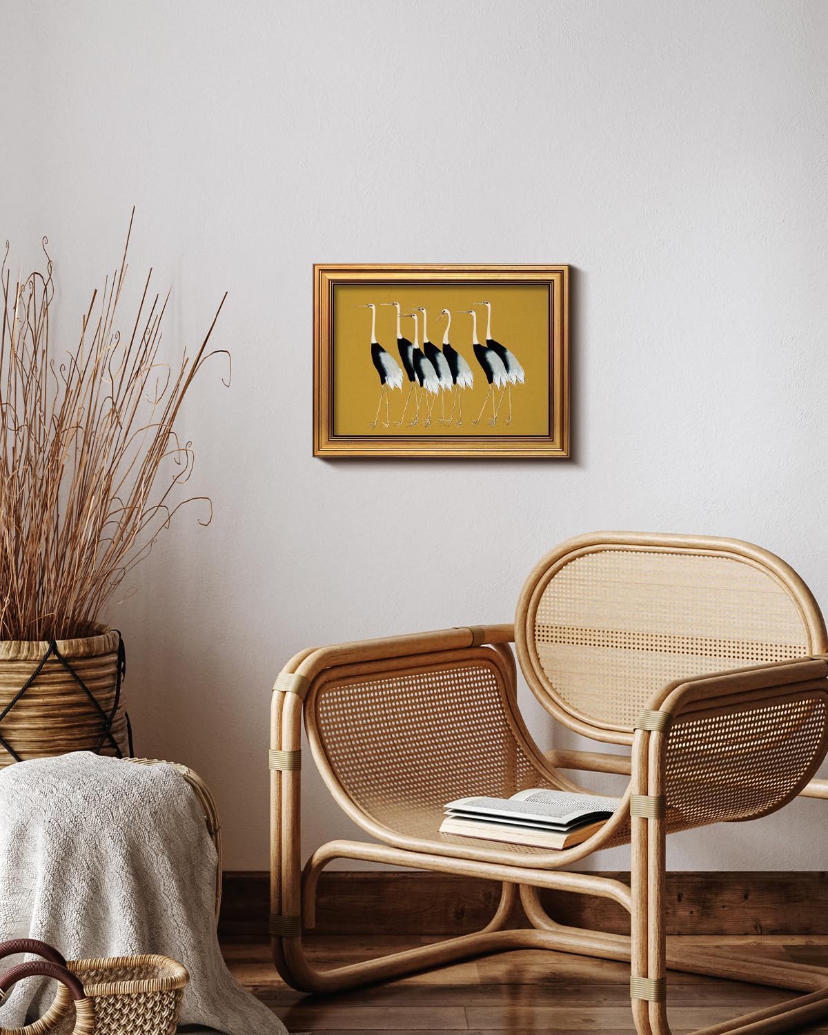 HUARCEY Gold Framed Vintage Wall Art for Living Room, Animals Painting Prints Shelf Decor for Kitchen, Aesthetic Bedroom Wall Art Decor, Christmas Gifts for Friends or Family (Seven Cranes 12"x16")