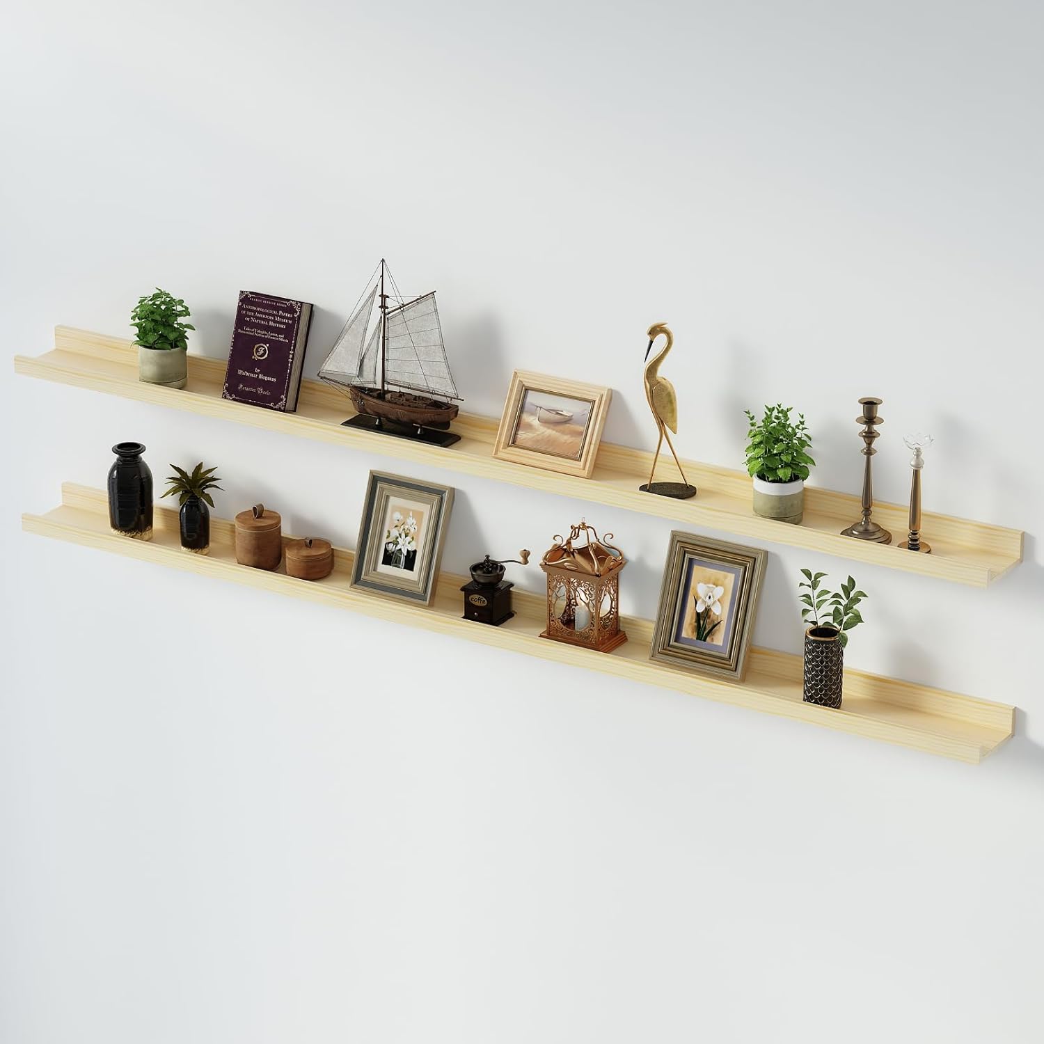 SAUMONIERES Picture Ledge Shelf Floating Book Shelves Set of 2 Wall Mounted Solid Wood for Bedroom Bathroom Living Room Kitchen, 72 Inch Natural