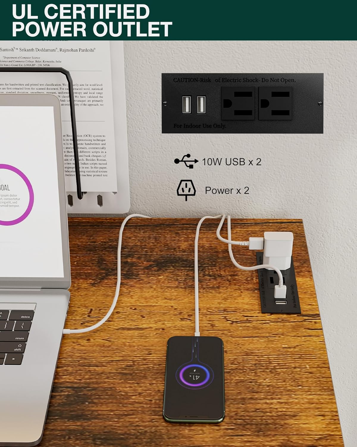 - 👍𝗜𝗡𝗧𝗘𝗚𝗥𝗔𝗧𝗘𝗗 𝗣𝗢𝗪𝗘𝗥 𝗛𝗨𝗕 – 𝗖𝗛𝗔𝗥𝗚𝗘 𝗘𝗩𝗘𝗥𝗬𝗧𝗛𝗜𝗡𝗚 𝗔𝗧 𝗢𝗡𝗖𝗘 — Stay powered and productive with 2 built-in AC outlets and 2 USB ports—perfect for laptops, phones, tablets, and more. No more messy extension cords or reaching for distant plugs; this smart design keeps all your devices charged and your workspace neat