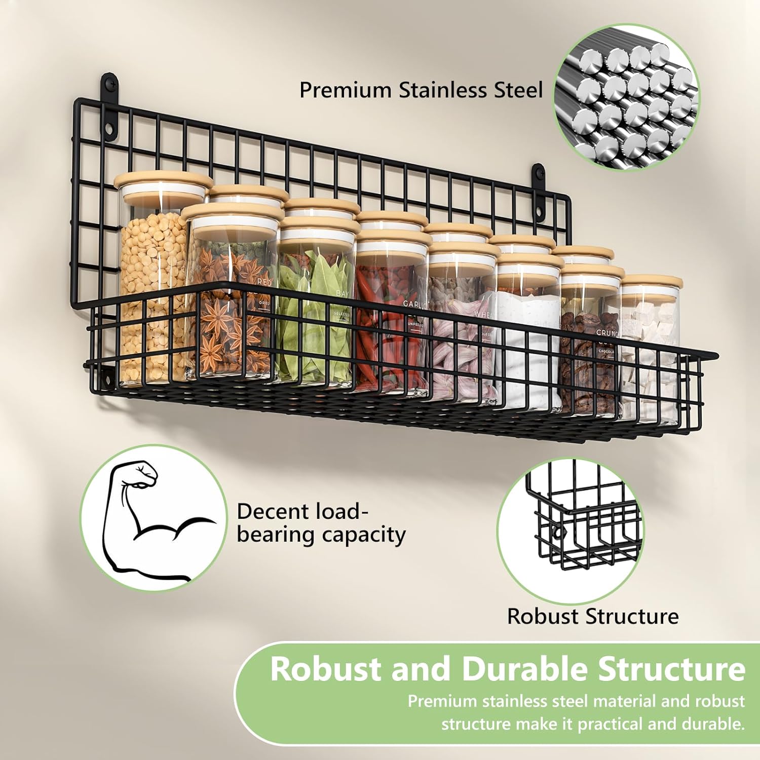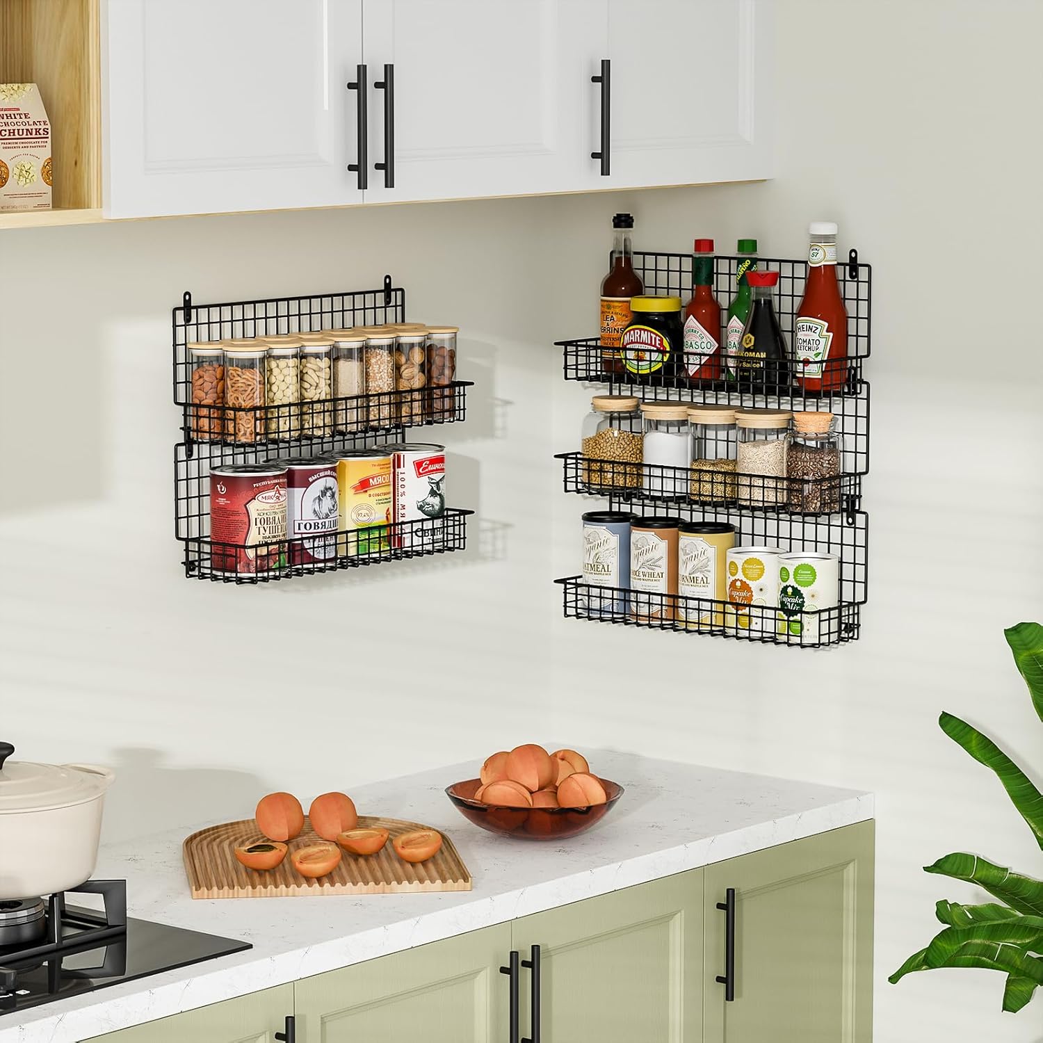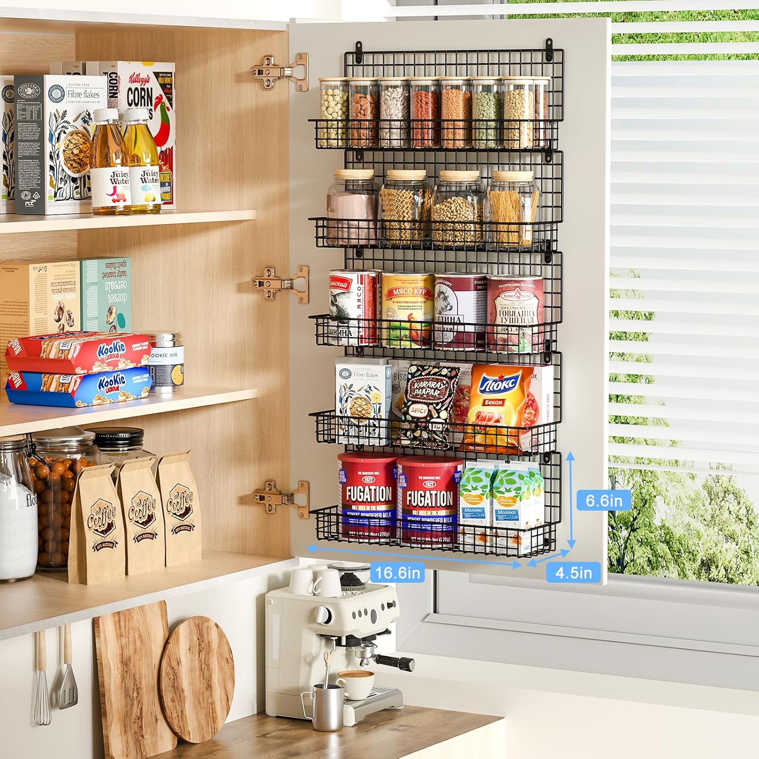 - 【Durable & Efficiently】The 5-tier wall mount spice rack made of by thicken iron wire, to make it more stability and durability, and mounting hardware included. This wall mounted spice rack is specially designed for kitchen and pantry storage. It can be hung on the wall or on a cabinet door. The spice rack for wall can efficiently utilize the unused space in the kitchen to keep your kitchen tidy.