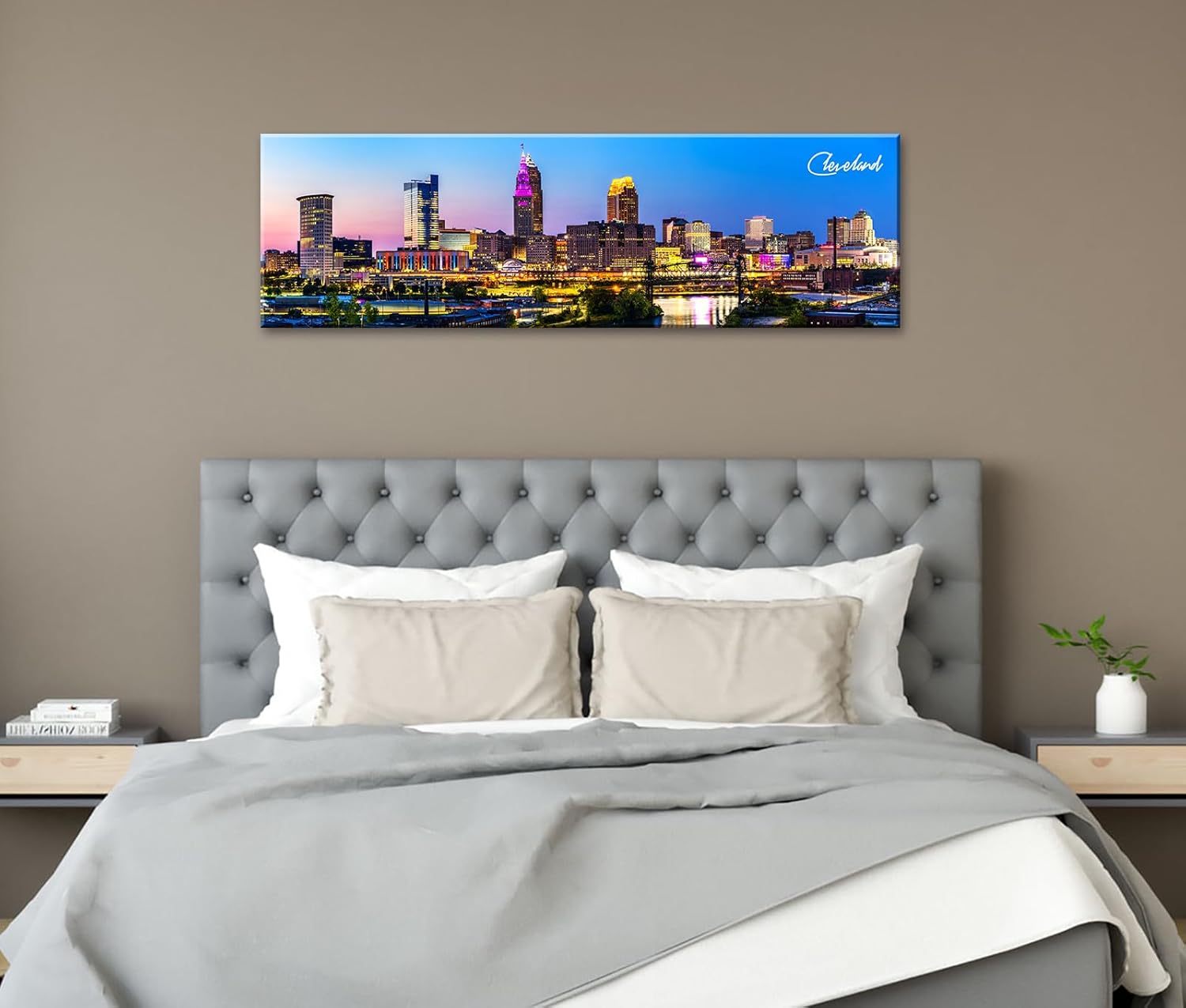 - Perfect Canvas Wall Art for Bedroom: Enhance your bedroom decor with this stunning Cleveland skyline wall art. The colorful painting brings a modern and artistic touch to your space, making it an ideal choice for wall art for bedroom or any room in your home.