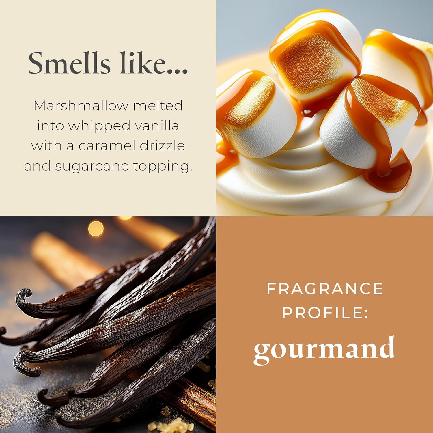 - EXPERTLY CRAFTED BLENDS: Infuse your space with a robust, long-lasting fragrance. Notes of sweet marshmallow vanilla, a whipped blend of vanilla and marshmallow with hints of caramel and sugarcane.