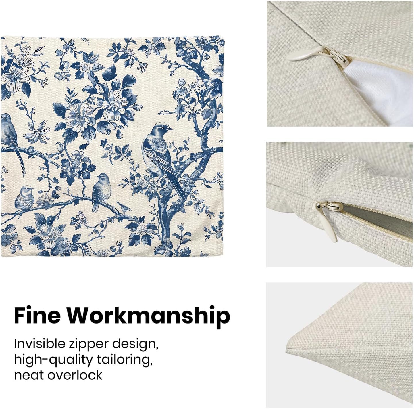 - 【Spring Pillow Covers】 Our Chinoiserie floral throw pillow covers 18x18 inch are made of excellent breathable polyester cotton fabric. The navy blue floral decorative pillow covers is sturdy, soft and skin-friendly. The outdoor pillow covers adopt exquisite edging technology and four sides of our floral pillow covers are sewn firmly, which is not easy to open the line.