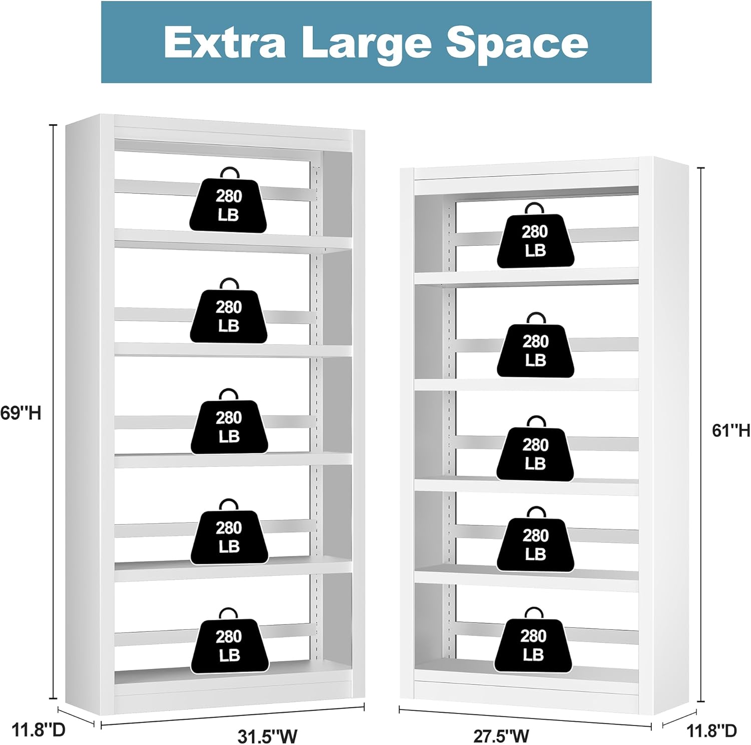 - ăSpacious Storage for Maximum SpaceăSize:69"H x 31.5"Wx 11.8"D. 5-tier tall bookshelf offers ample storage for books, files, and decor, making it a great choice for home office upgrade and space-saving furniture.