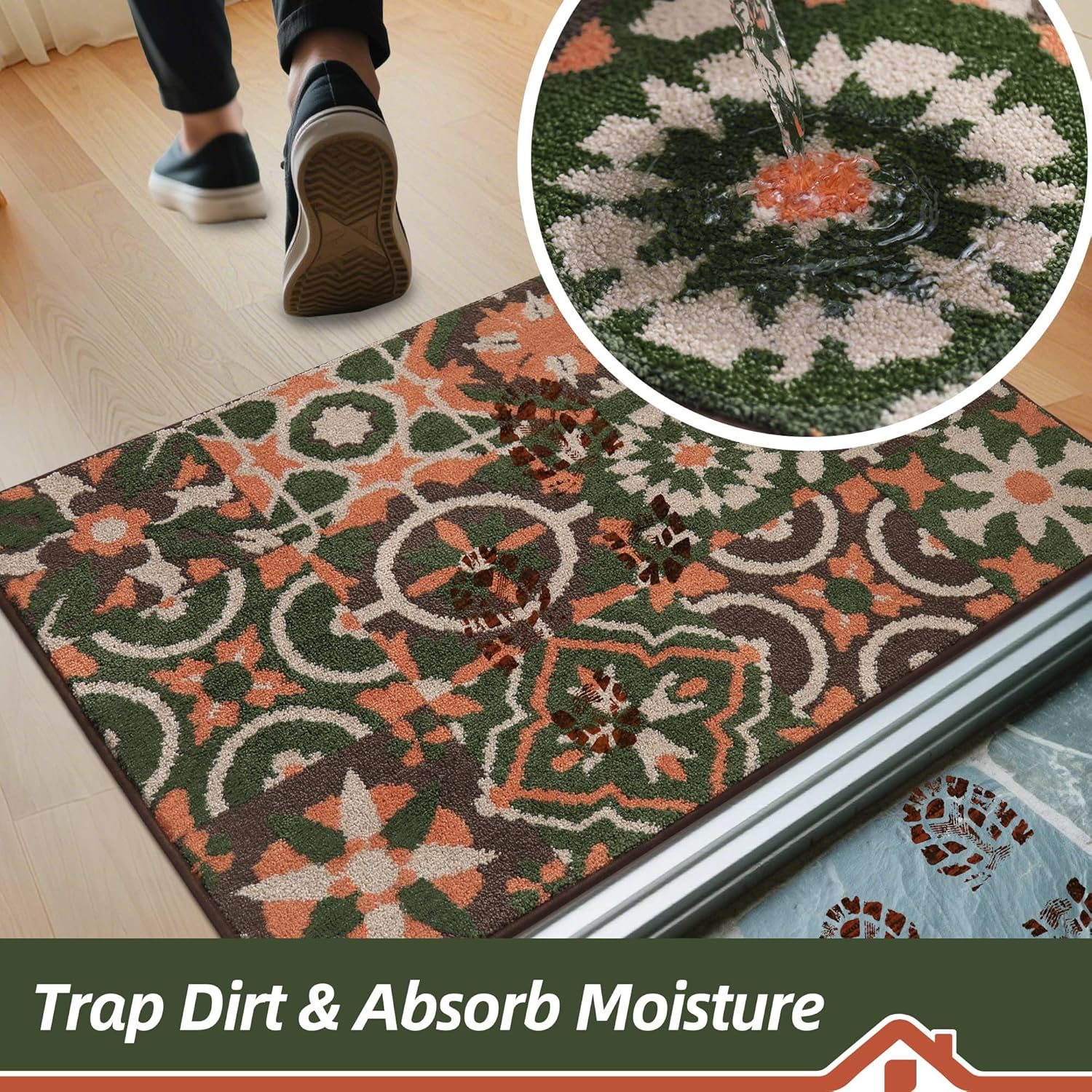 BEQHAUSE Dirt Trapper Door Mat 20" x 32", Non-Slip Entryway Rugs Washable, Floor Mat Stain Resistant and Absorbent Welcome Mat for Front Back Door, Muddy Wet Shoes & Paws, Boho Geometric Floral