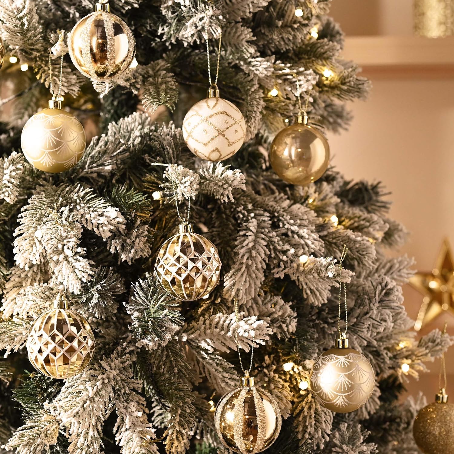 Valery Madelyn Christmas Ornaments Set, 30ct 2 Inches White and Gold Shatterproof Christmas Tree Decorations Ball Ornaments Bulk, Elegant Hanging Ornaments for Xmas Holiday Party Decor