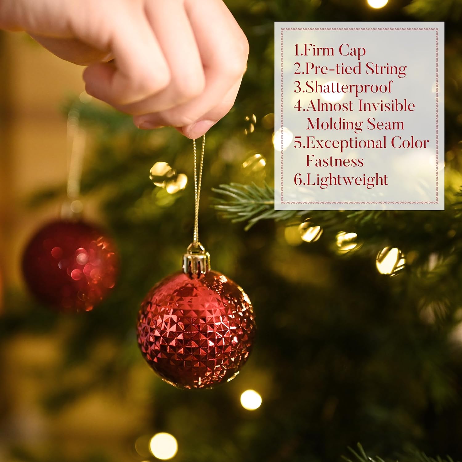 - 【Shatterproof】These Christmas ornament are made of sufficient thickness plastic to prevent breakage. The ornament set remains intact even after falling from 2 meters high onto a hard floor. It is suitable for family
