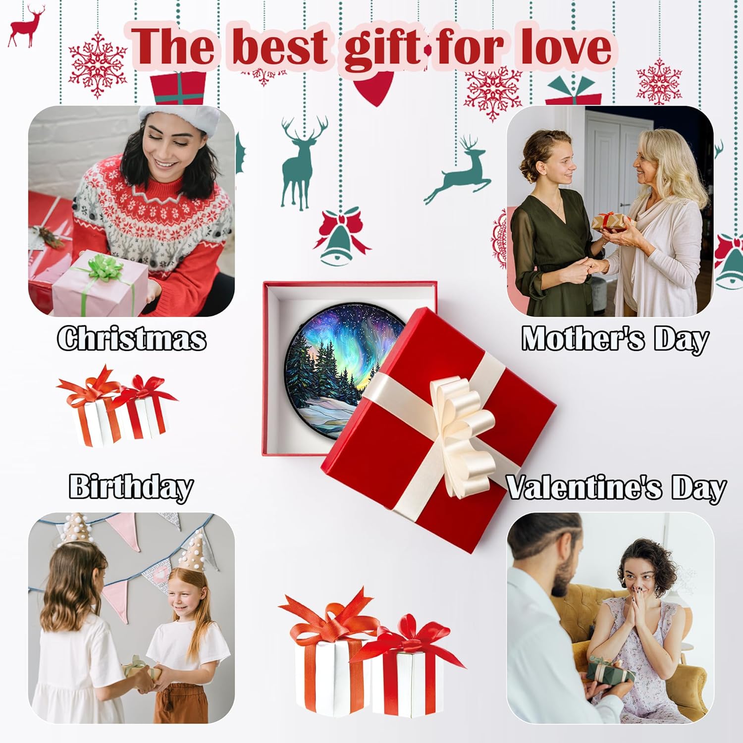 Stained Glass Window Hanging, Aurora Landscape Sun Catchers Glass Panel Green Trees Suncatcher Decor for Birthday for Women, Men, Wife, Aunt, and Mom 9.8 in