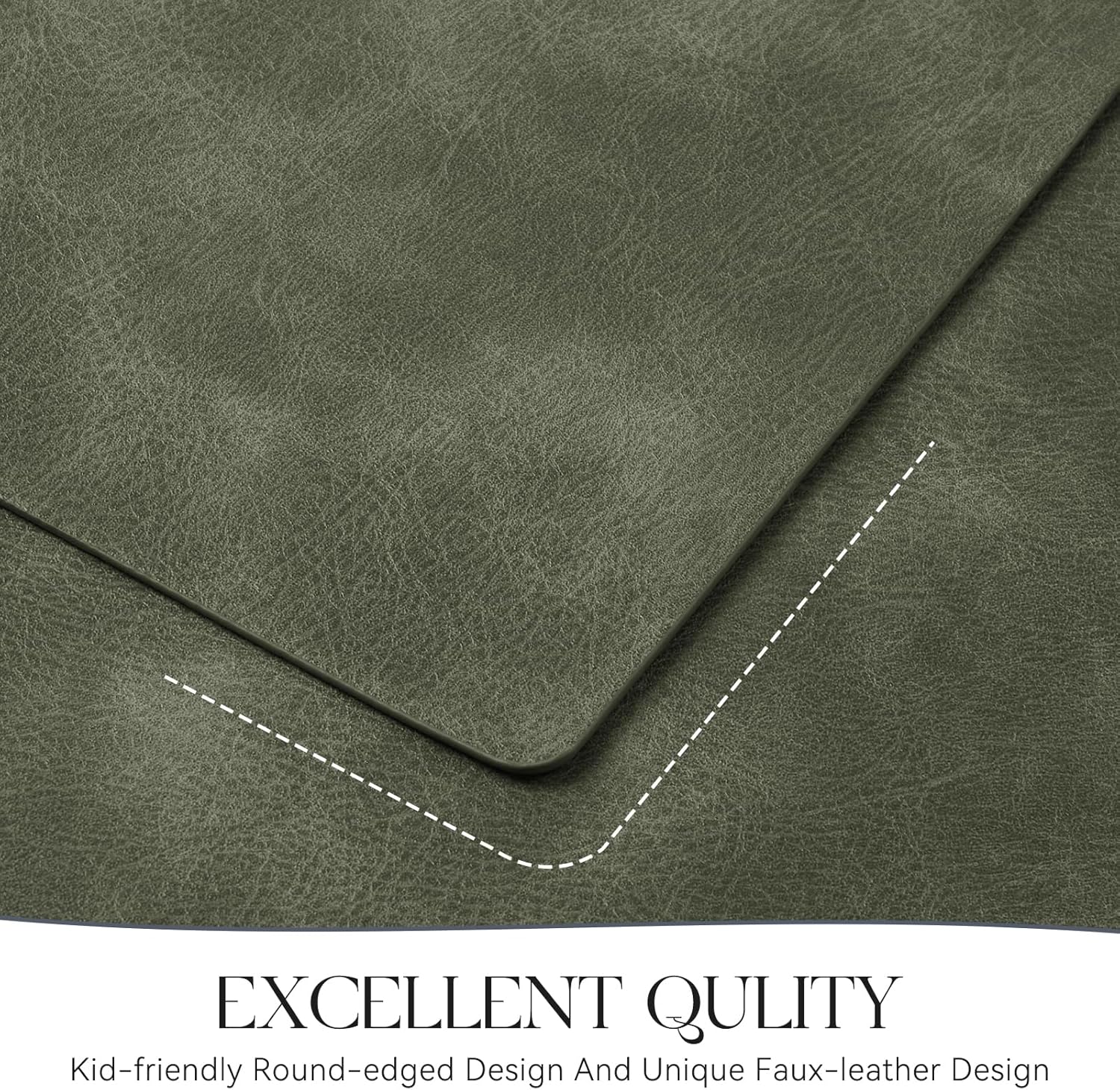 MOSAYT Vinyl Placemats Set of 8-12 X 17 Inch - Faux Leather 100% Waterproof Oil-Proof Wipeable PU Place Mats, Heat Resistant Reversible Table Mats for Kitchen, Dining, Outdoor (Olive Green)