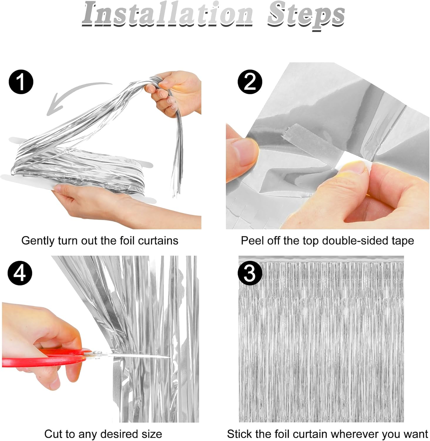 - Easy to Install: Each silver tinsel backdrop comes with an adhesive strip at the top. Simply peel off the backing and stick the party streamer to any smooth surface for a quick and hassle-free setup.