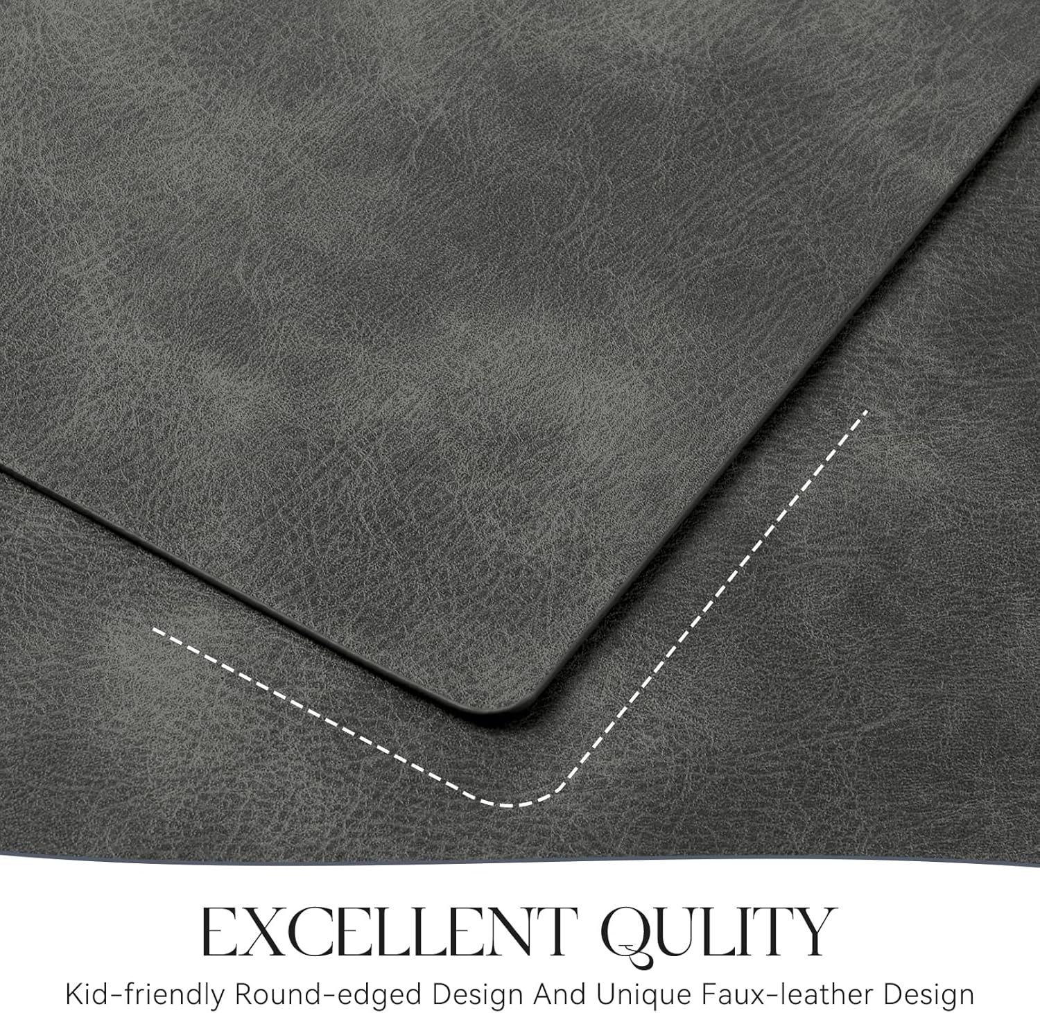 MOSAYT Vinyl Placemats Set of 4-12 X 17 Inch - Faux Leather 100% Waterproof Oil-Proof Wipeable PU Place Mats, Heat Resistant Reversible Table Mats for Kitchen, Dining, Outdoor (Dark Grey)