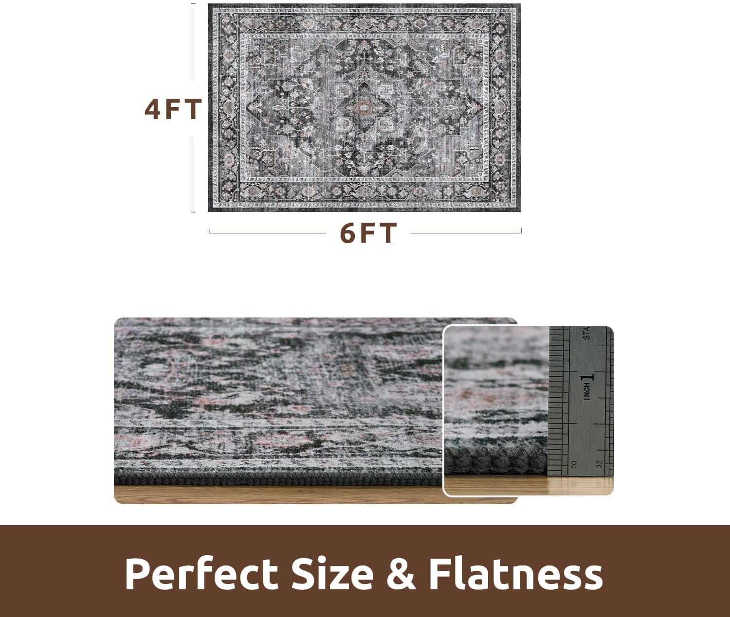 AMOAMI-4X6 Area Rugs for Living Room -Soft Vintage Bedroom Rug-Non Slip Washable Rug-Throw Rugs for Living Room Bedroom Bedside Dining Room Office Dark Grey & Black