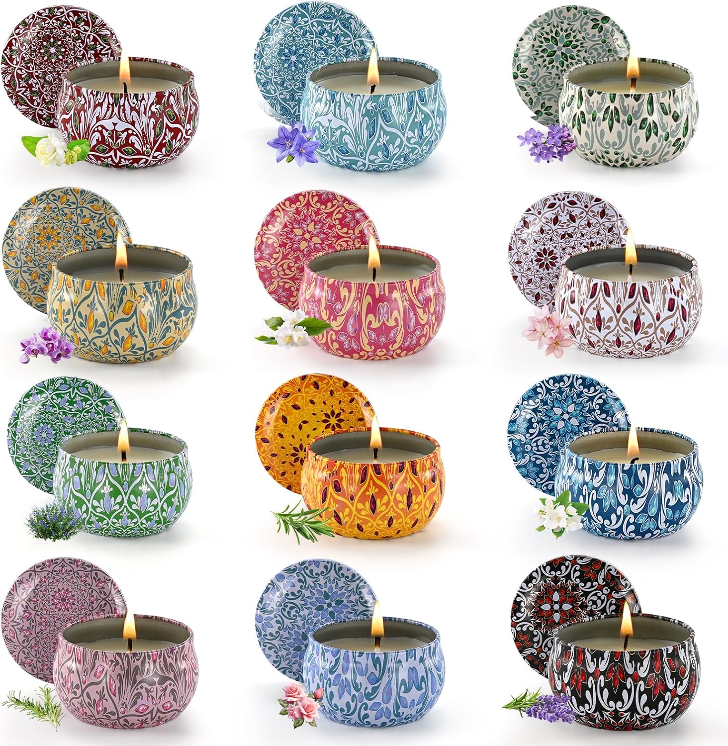 Scented Candle Set, 12 Pack Candles Gift for Home Scented, Aromatherapy Candle Gift, 2.5 oz Long Lasting Soy Candles for Men, Women, Friends Birthday, Mother's Day, Valentine Bath SPA