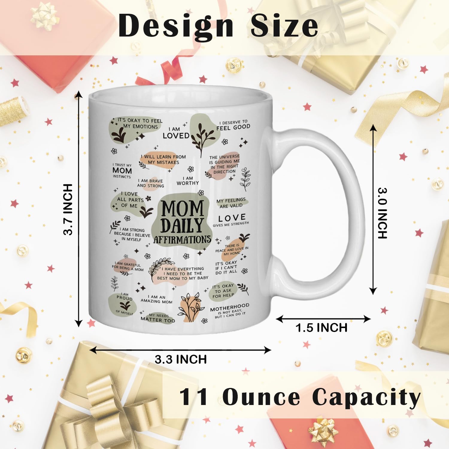 JINYO Boho Floral Mom Coffee Cup, Mother's Day Mugs Cups, Mother Birthday Gifts from Daughter Son, Mom Daily Affirmation Ceramic Coffee Tea Mug 11 oz