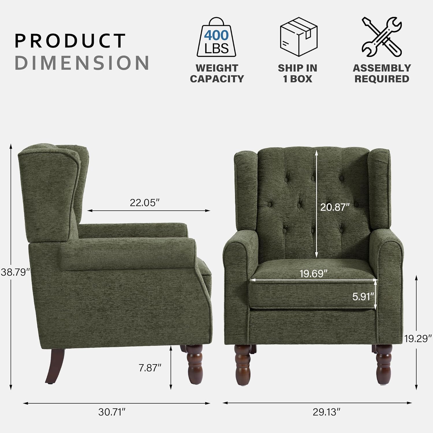 - Muti-Color & Wide Application:Our wingback armchirs are classically styled and available in a wide range of colours, making them suitable for a variety of places, whether it's a living room, bedroom, office or waiting room, they will bring a modern and stylish touch to your room