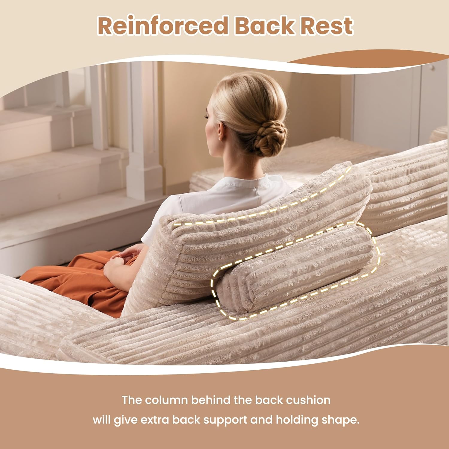 HOOOWOOO Cloud Sectional Couches for Living Room,Modular Sectional Sofa No Assembly,136X108 Inch Plush Corduroy Large U Shaped Floor Couch Set with Deep Seat Ottoman(Beige)