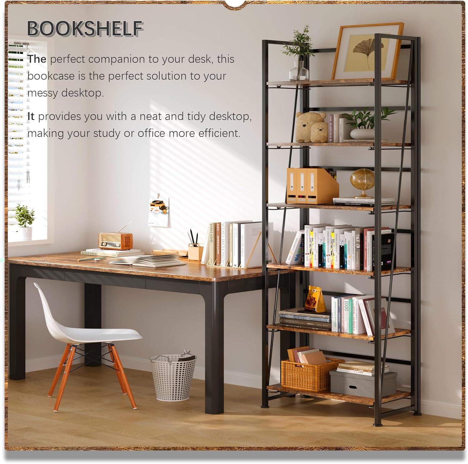 - ăSimplicity and practical folding bookshelfăit is a industrial style design with simplicity and retro, which can not only make your room in good order, but also occupy few space. You can put it in any space of your home, such as living room, bedroom, corridor, kitchen, balcony, etc