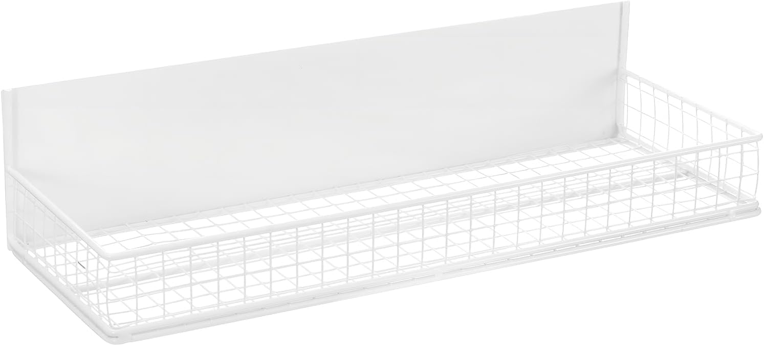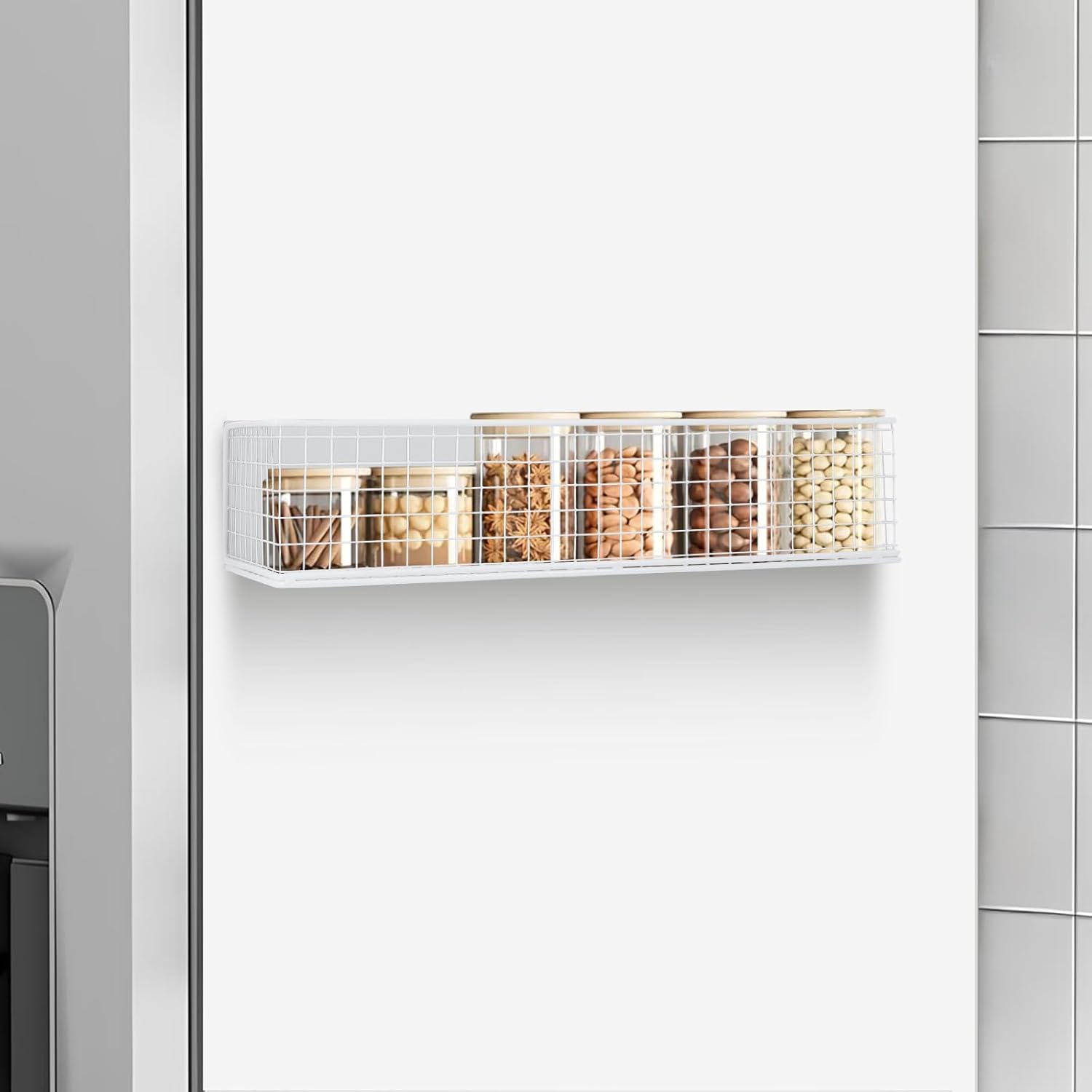 Magnetic Storage Basket, Magnetic Shelf for Fridge,Magnetic Spice Rack Wire Mesh Magnetic Organizer Holder Accessories for Office Kitchen Classroom Storage, White, 13.77" x 5.11" x3.26"