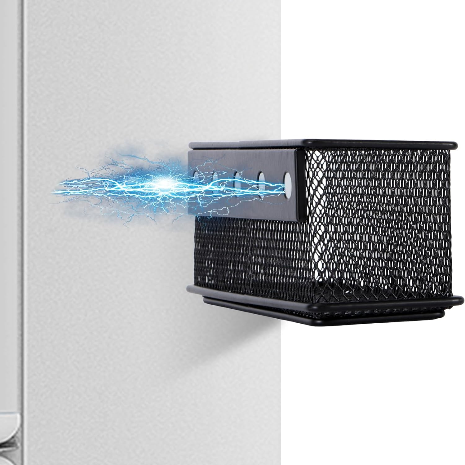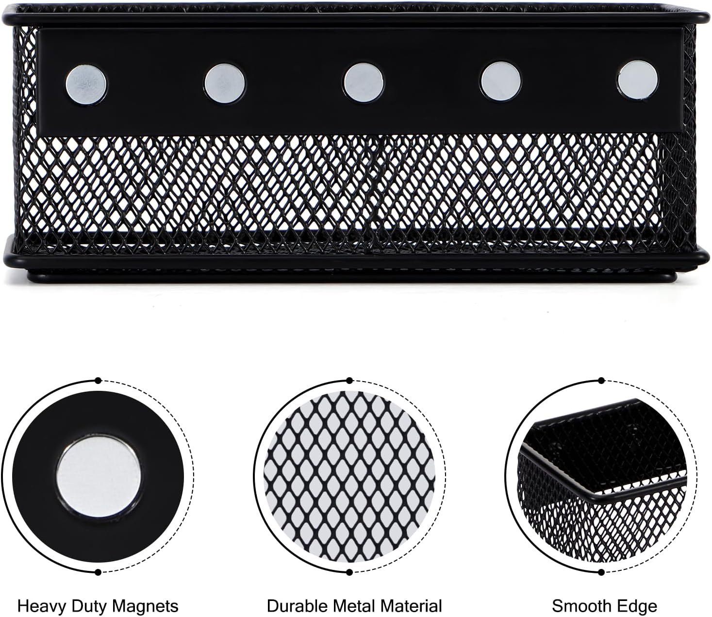 6.29'' × 2.28'' × 2.48 Black Magnetic Basket for Refrigerator Magnetic Organizer Holder Locker Organizer for Home Office Accessories Magnetic Basket for Whiteboard,Set of 4