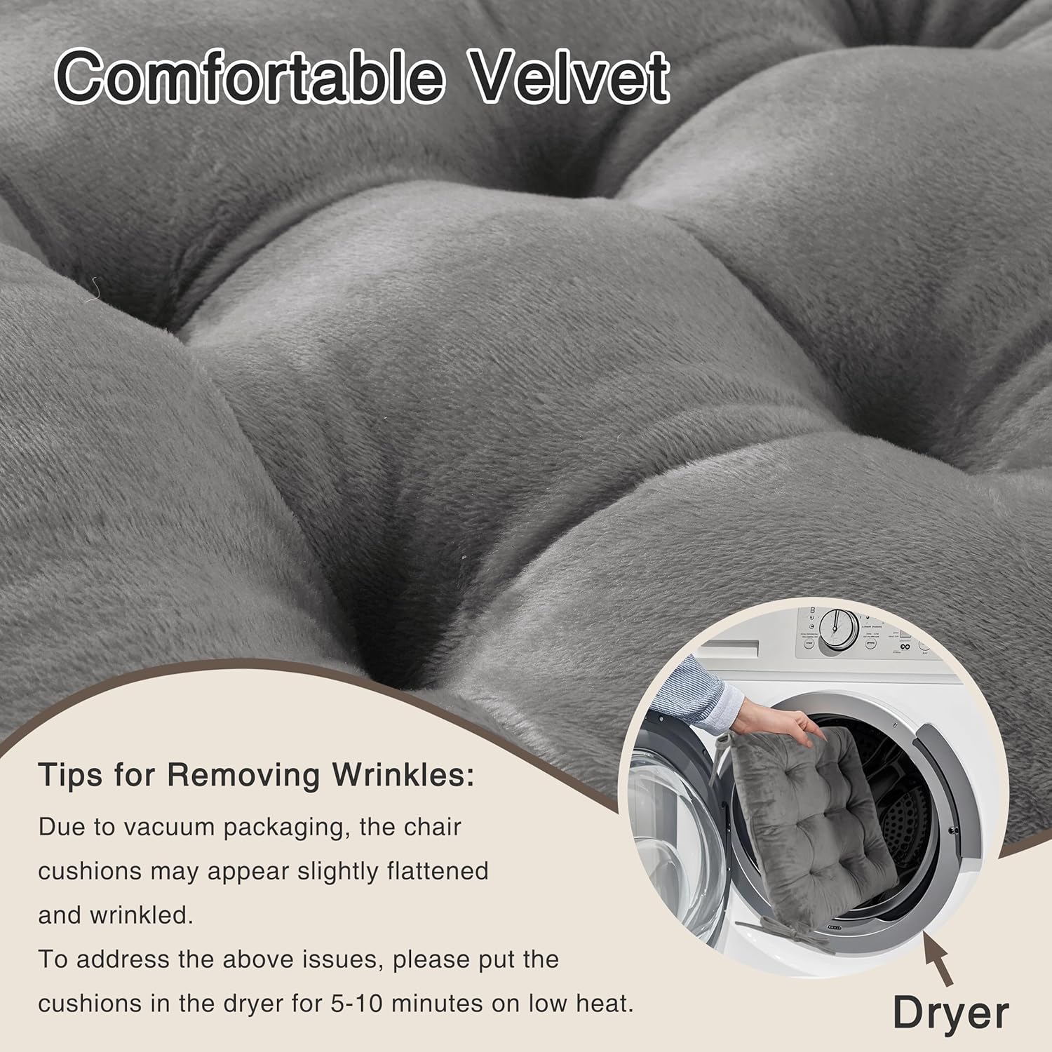 - Premium Fabric: Soft to the touch, gentle on the skin and highly resistant to pilling. This seat cushions for dining chairs is made from plush premium crystal velvet, which has a smooth and cosy texture. The interior is filled with a thick, 380g high resilience polyester fabric that resists deformation and shrinkage and retains its shape even after prolonged use.