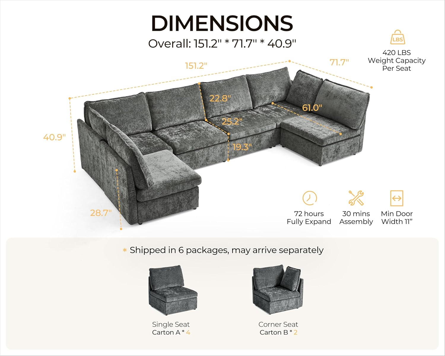 - ăMultiple Packages & Dedicated Supportă Your cloud modular sectional couch ships in 6 separate packages, which may arrive at different times. If you receive only some boxes, donât worryâmore are on the way! Need additional tracking details or assistance? Weâre happy to helpâjust reach out! Our team is here to ensure you receive everything as expected and guarantee a smooth, hassle-free shopping experience with your complete satisfaction
