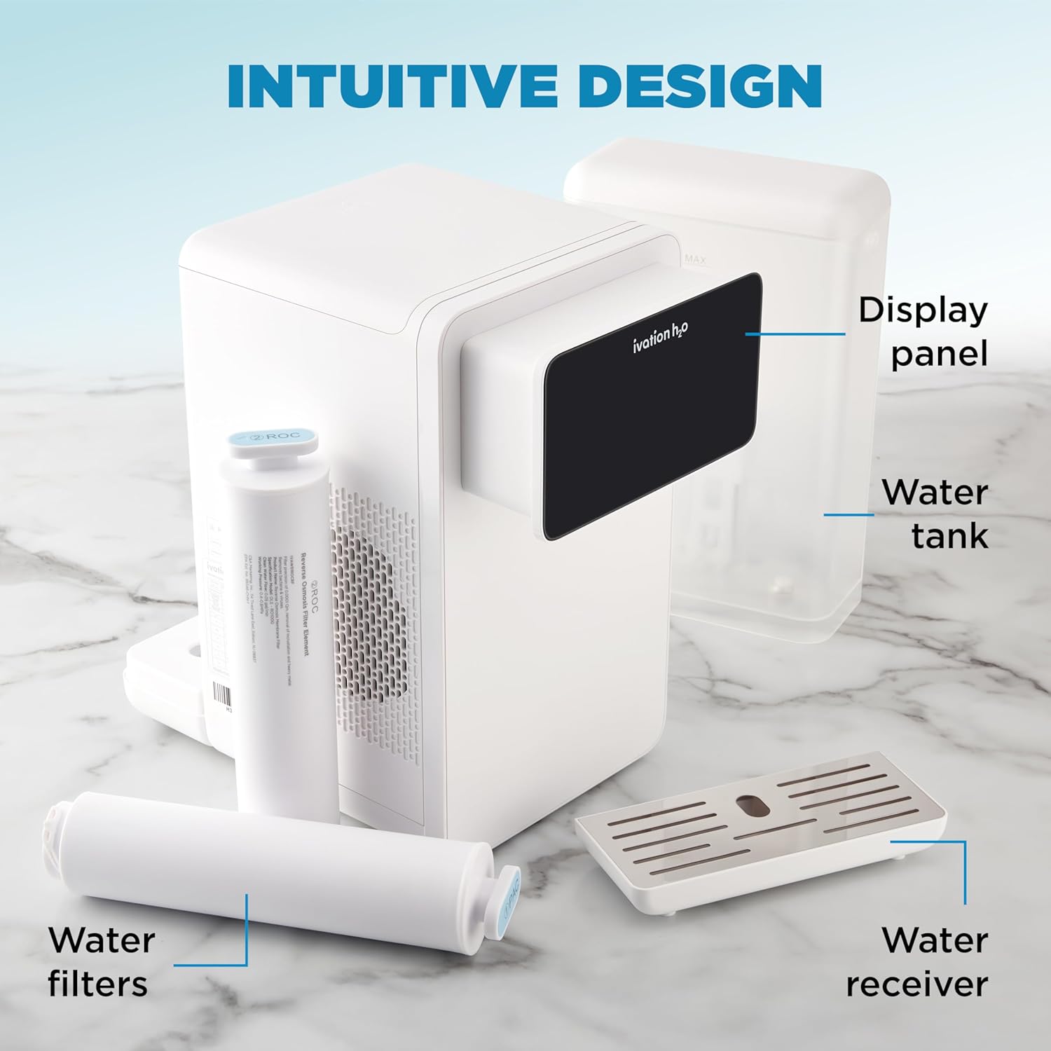Ivation H2O Hot & Cold Countertop, Reverse Osmosis Water Filter, TDS Filter System, 4 Stage RO Water Filtration, 6 Temperature Presets, 3:1 Pure to Drain, Portable Plug-and-Play - White