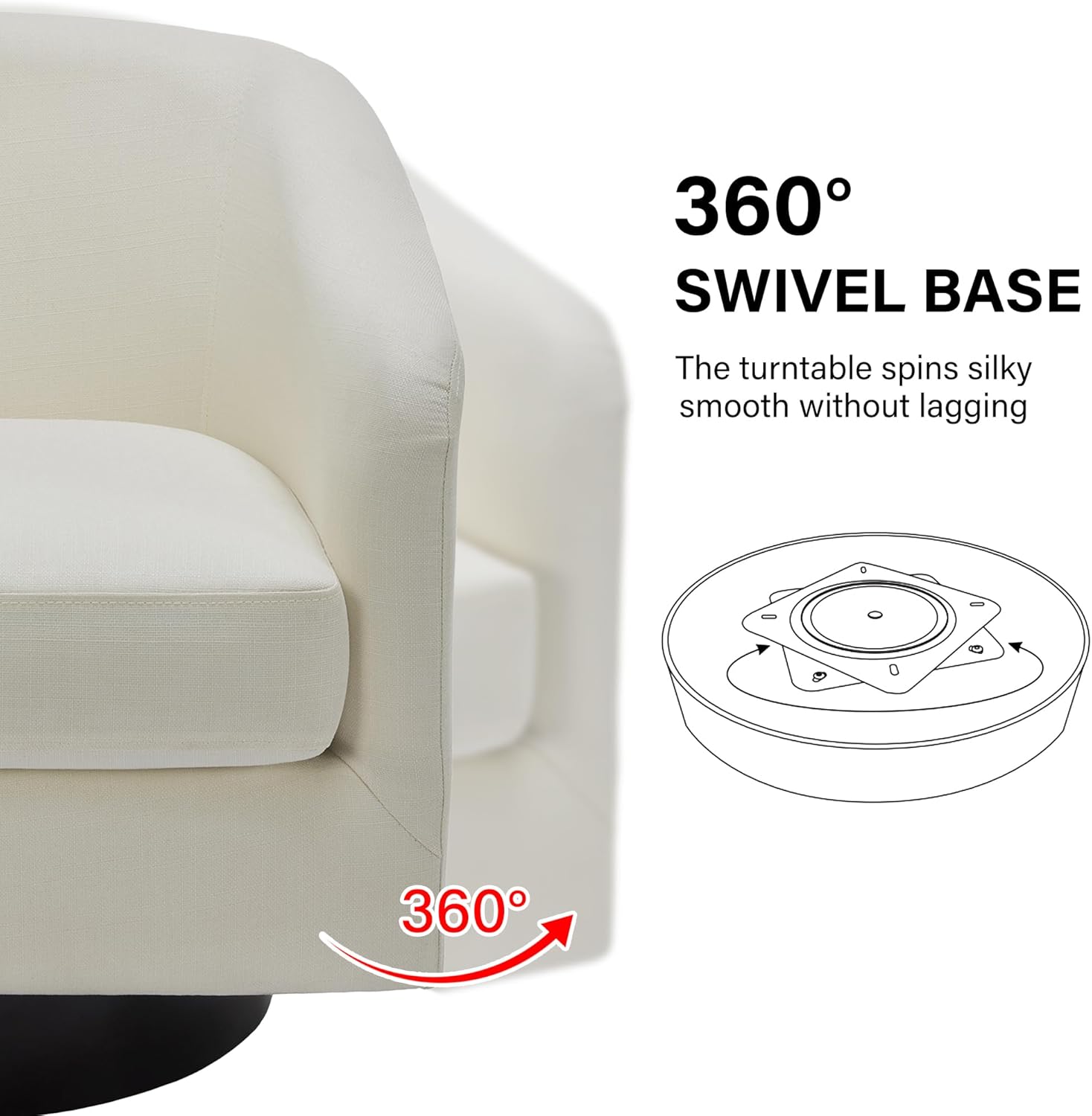 - 360 Degree Swivel Barrel Chair: This 360 degree round swivel chair designed for your leisure comfort. Heavy solid turntable, making it more stable and not wobbly