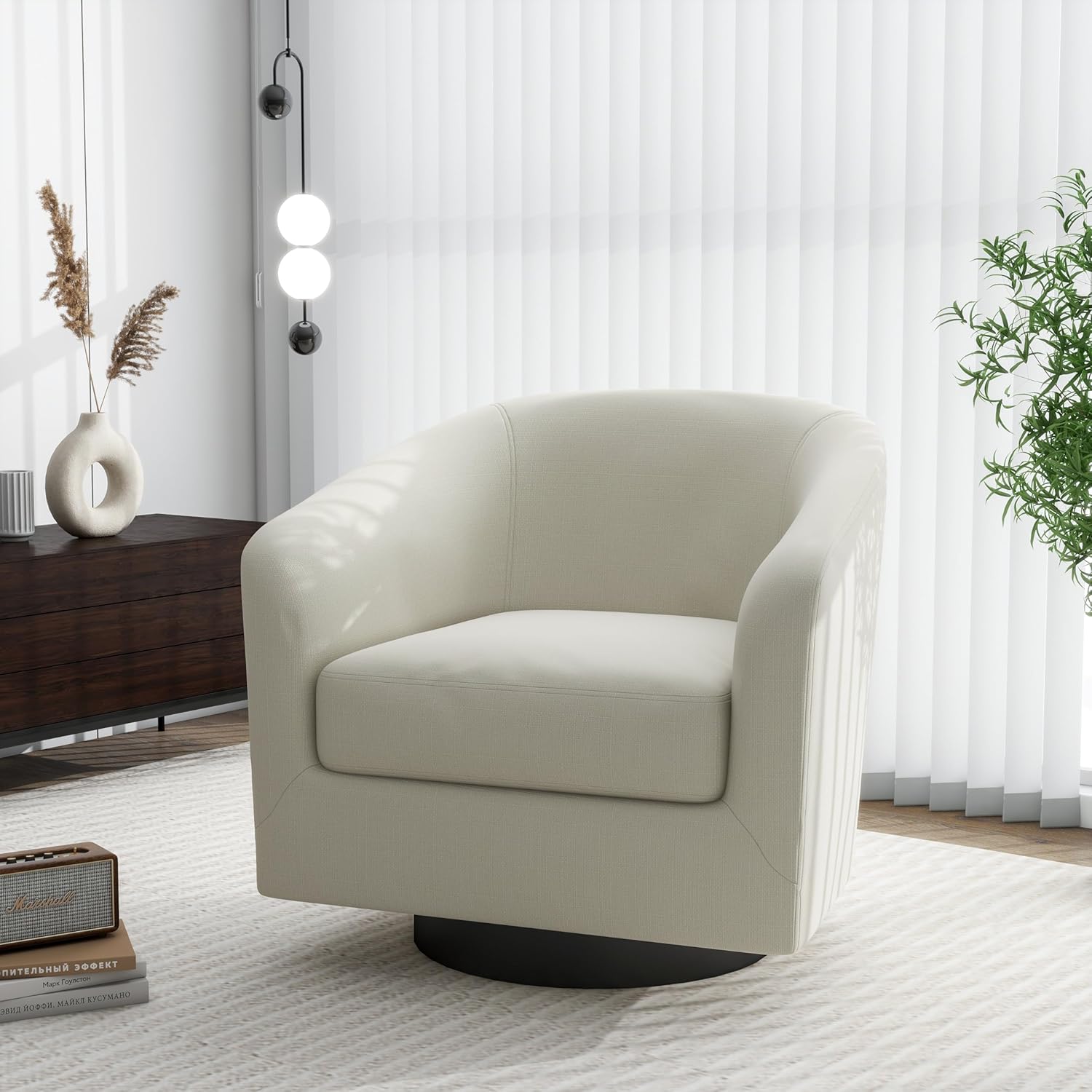 Swivel Barrel Accent Chair, Modern Round Linen Arm Chair for Living Room, Bedroom, Comfy Club Reading Chairs for Adults(Linen Fabric, Beige, Set of 1