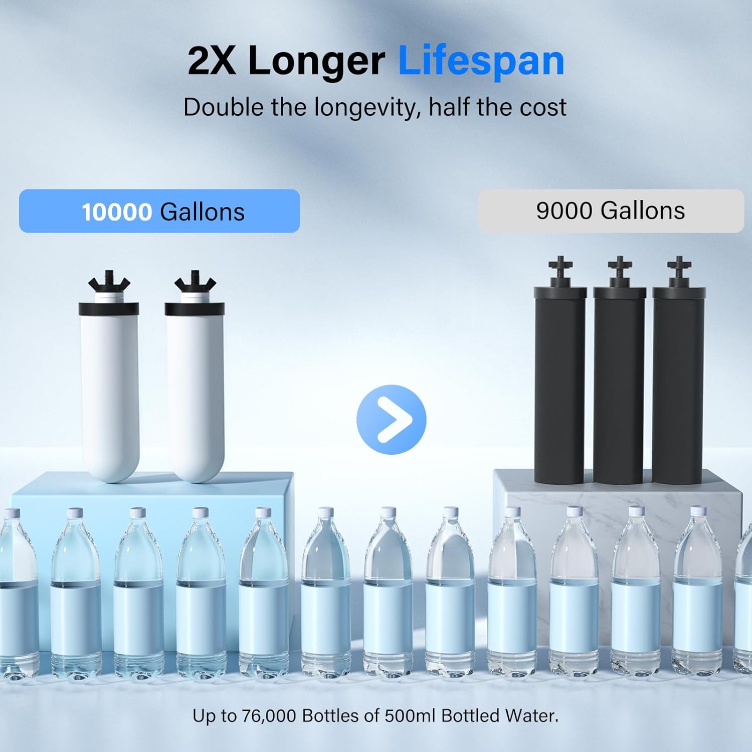 - 【Longer Service Life】-Each pair of ceramic filters can provide 20,000 gallons of fresh water. For better performance, we recommend that you replace the filter every 20,000 gallons. However, this may vary depending on your water conditions. Note: That TDS level does not fully indicate the quality of the water and our filters DOES NOT lower TDS value.