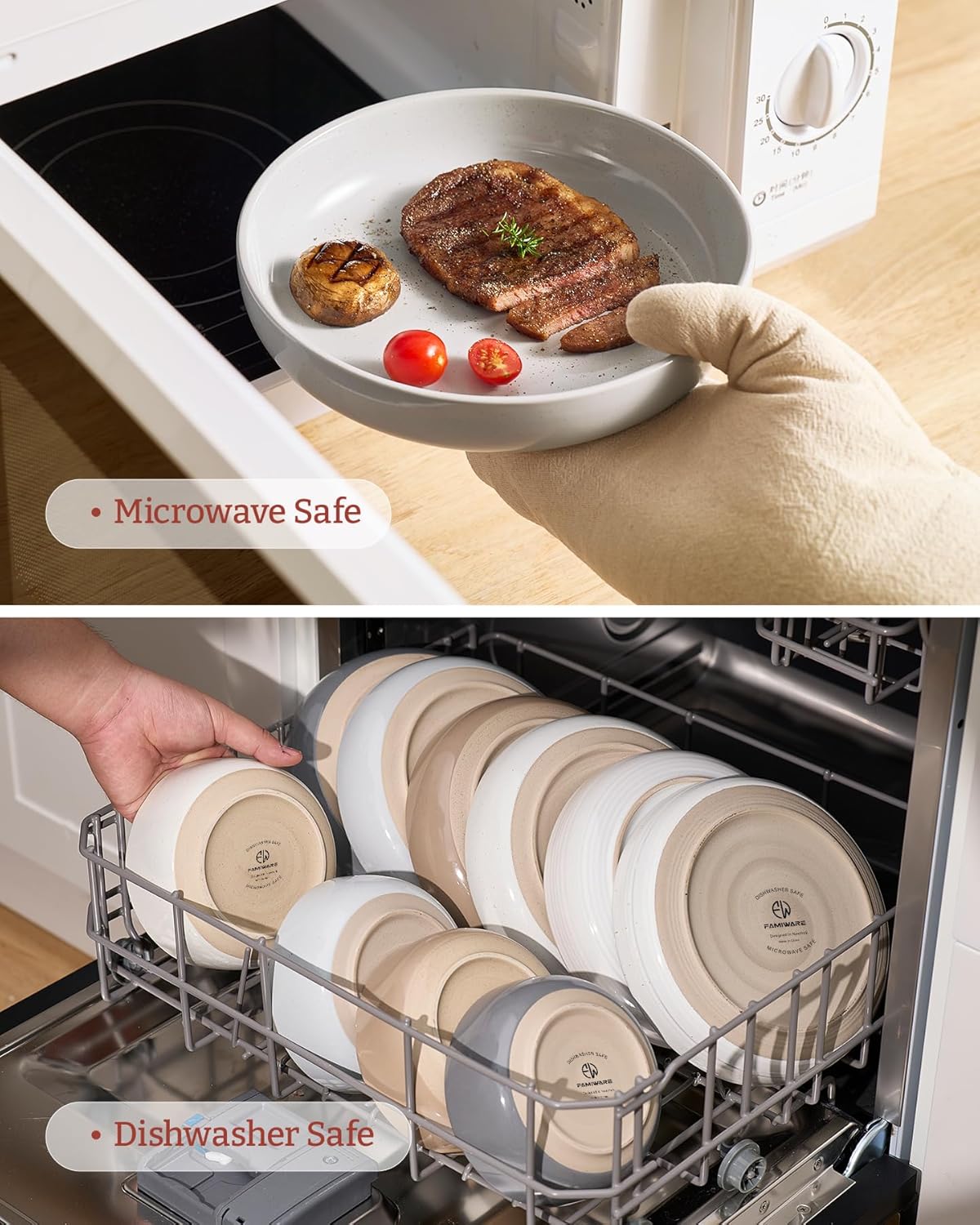 - 【DISHWASHER AND MICROWAVE SAFE】Our pasta bowls have passed microwave and dishwasher safe testing at internationally accredited laboratories. Each plate and bowl is dishwasher safe and microwave safe
