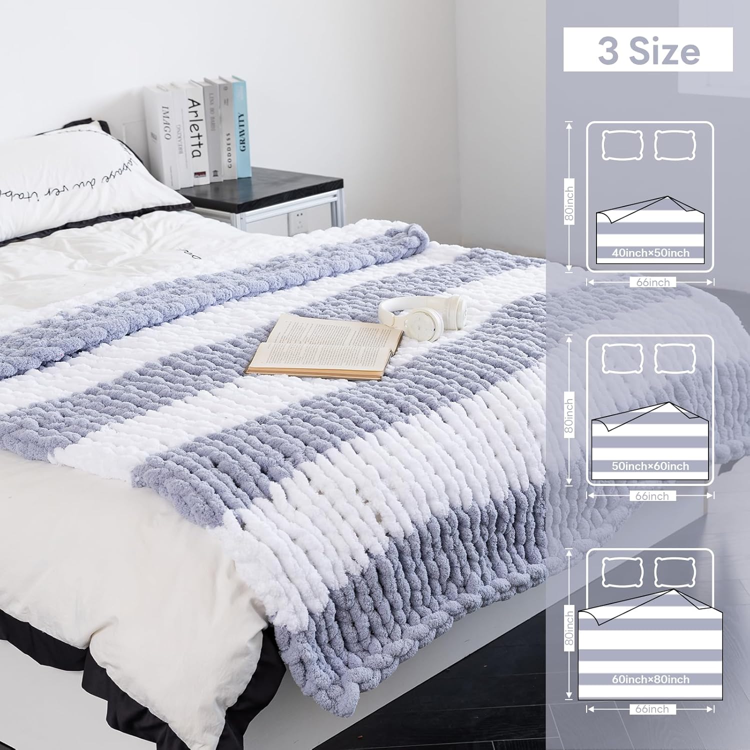 Chunky Knit Blanket - Luxury Soft Cozy 60 * 80 Throw Blanket,100% Woven Blanket Rope Knot Throw Blanket for Couch, Sofa, Home Decor, Gift - Machine Washable(White/Light Gray)