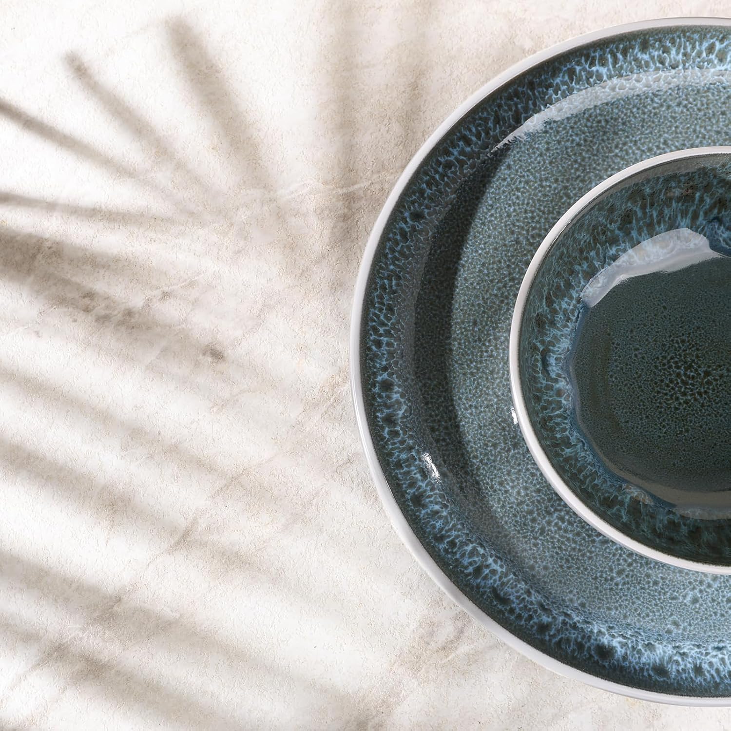 - HANDCRAFTED AS ARTWORK:Each piece of ceramic dinnerware sets for 4 is repeatedly fired with double-sided reactive glaze and flowing glaze technology to create unique and changing colors. This production technology ensures that each bowl and plate is unique, combining dining experience and artistic inspiration.