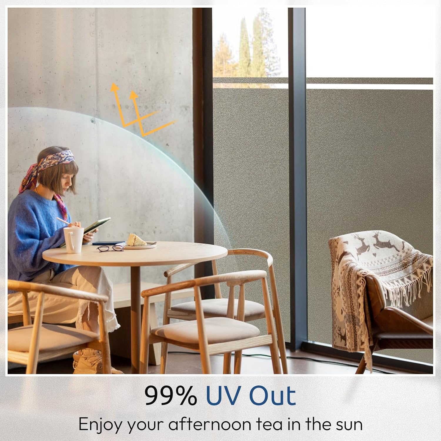 - Balanced Light: Experience the perfect balance of privacy and natural light with Window Privacy Film. The Taupe (tea grey) tint adds a subtle, stylish touch to any space, while the frosted design obscures outside view, ensuring your personal spaces remain confidential and serene
