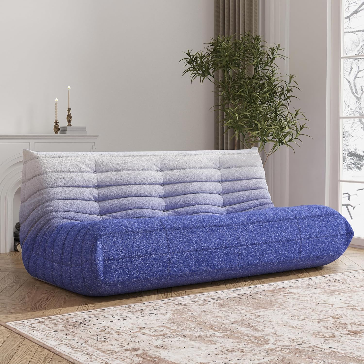 Big Bean Bag Chairs for Adults, 3 Seater Large Bean Bag Sofa, Fireside Chair Lazy Sofa Chair with High Density Comfortable Foam, Modern Bean Bag for Living Room, Bedroom, Office (Blue&White)