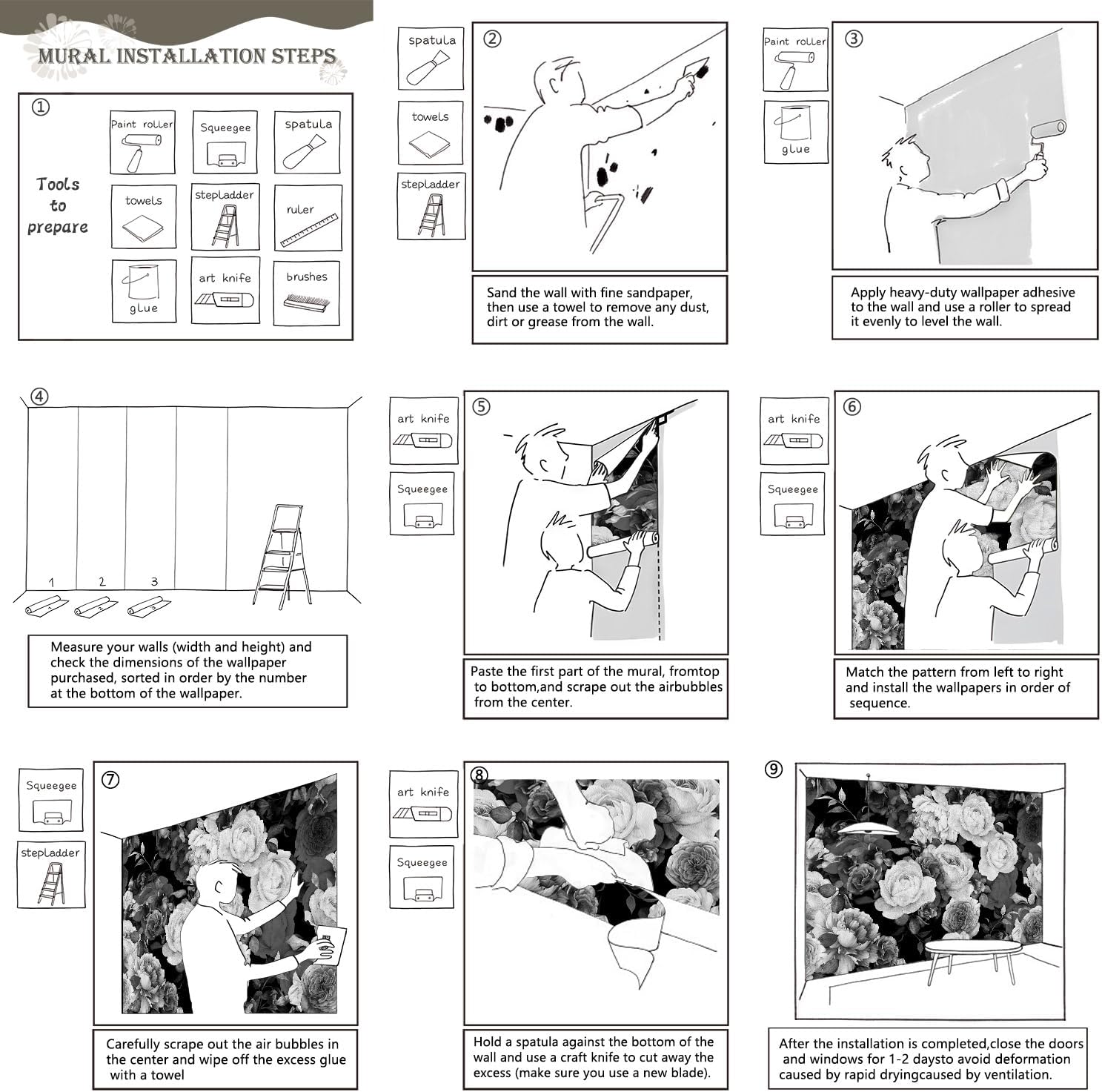 - Tips: Mural can not be peeled and pasted, you need to buy a heavy duty wallpaper glue