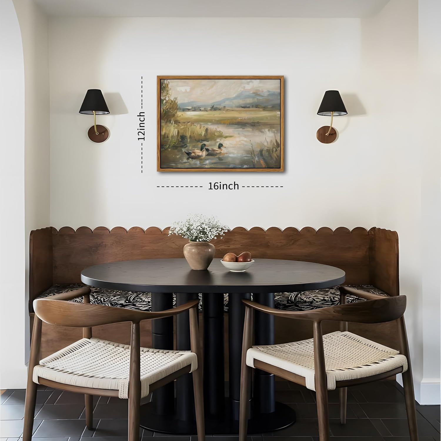 Floating Framed Canvas Wall Art, Vintage Mallard Duck Oil Paintings Print, Countryside Art Wildlife Nature Pond Wall Decor for Living Room, Bedroom, Office, Rustic Decor 12x16 inch