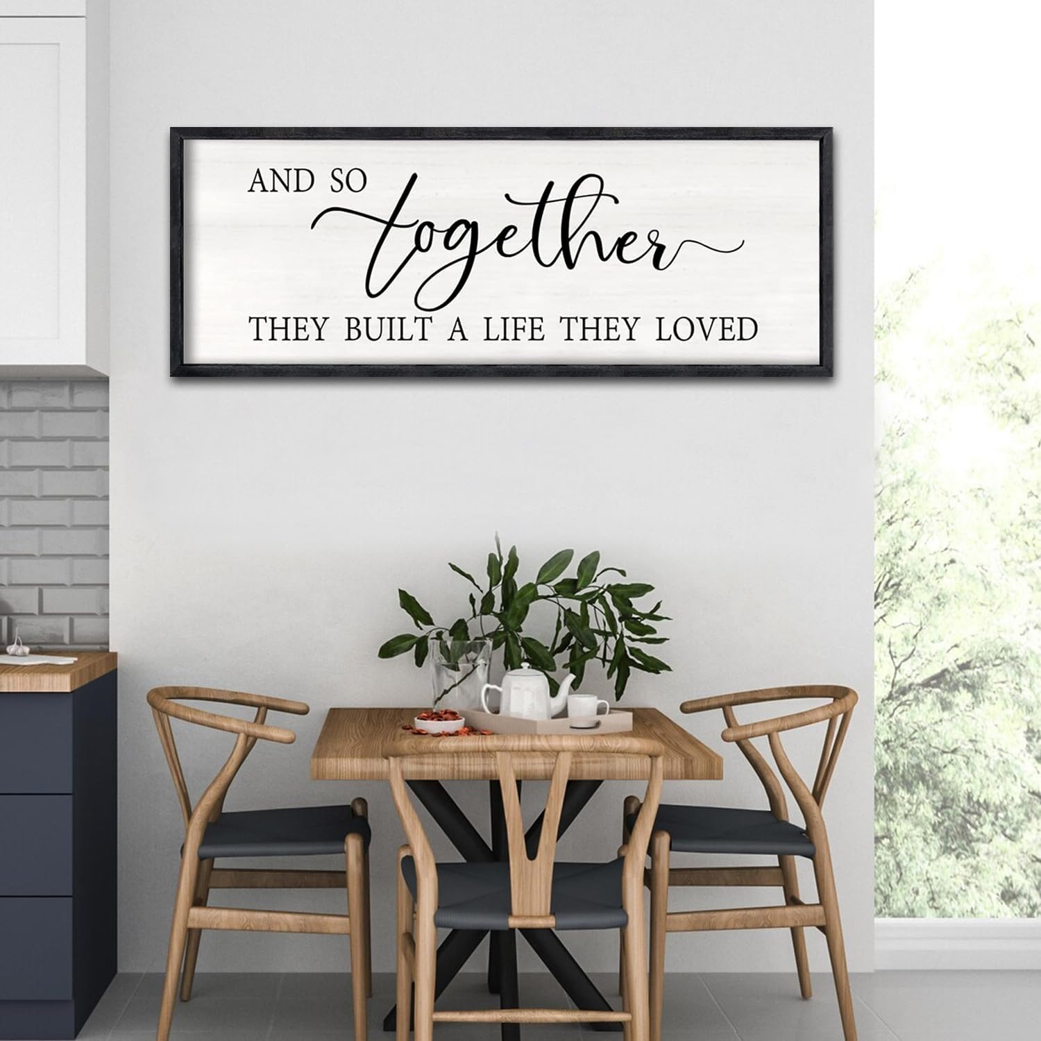 And So Together They Built A Life They Loved Sign Large Above Bed Wall Decor 32"×12" for Bedroom Over Bed Wall Art Hanging (Black)