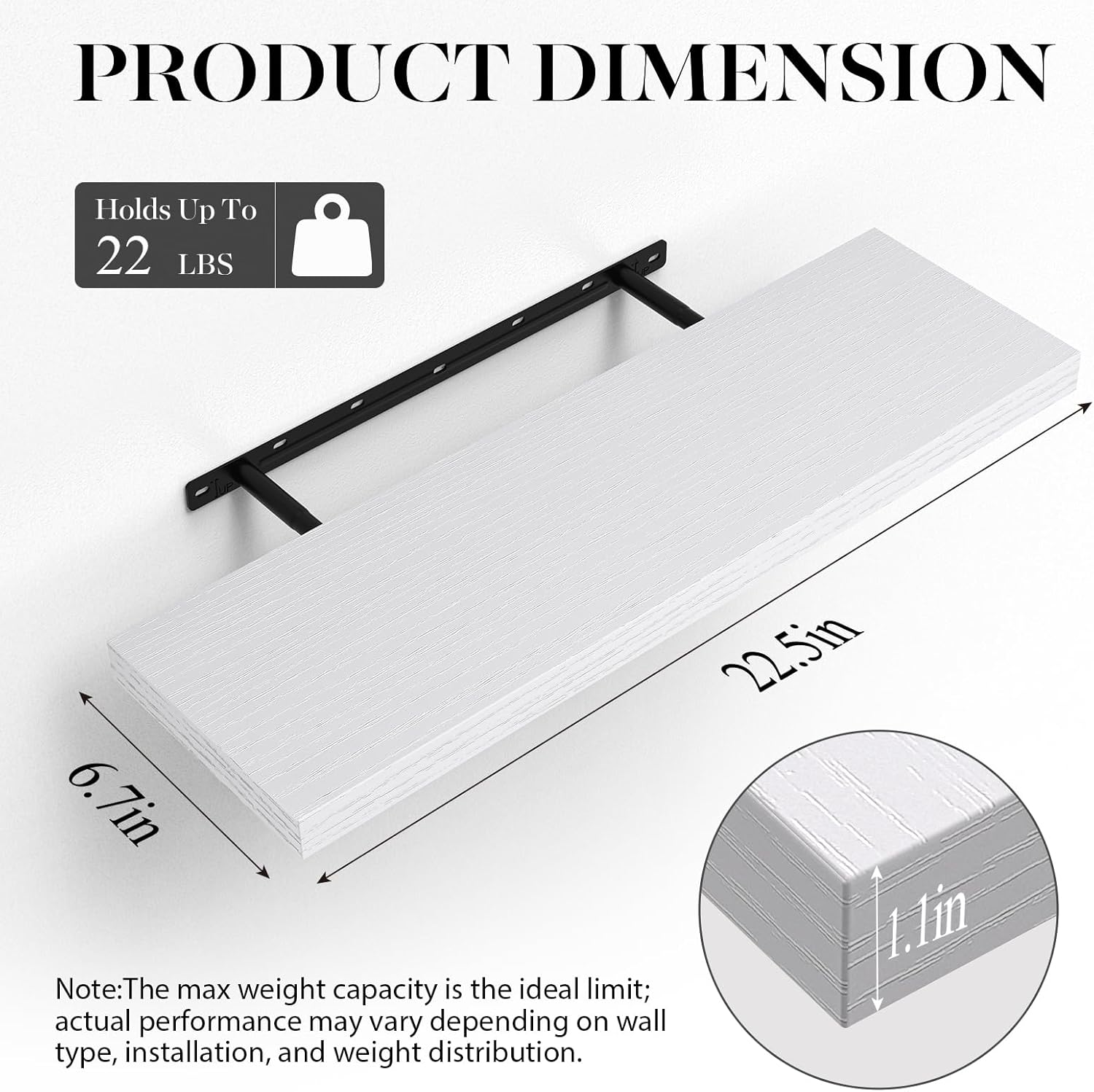 BAYKA Floating Shelves Set of 2, 22.5" Rustic Wood Wall Mounted Shelves for Bathroom, Bedroom, Living Room, Kitchen & Office, Hanging Display Shelf with 22 lbs Capacity (White)