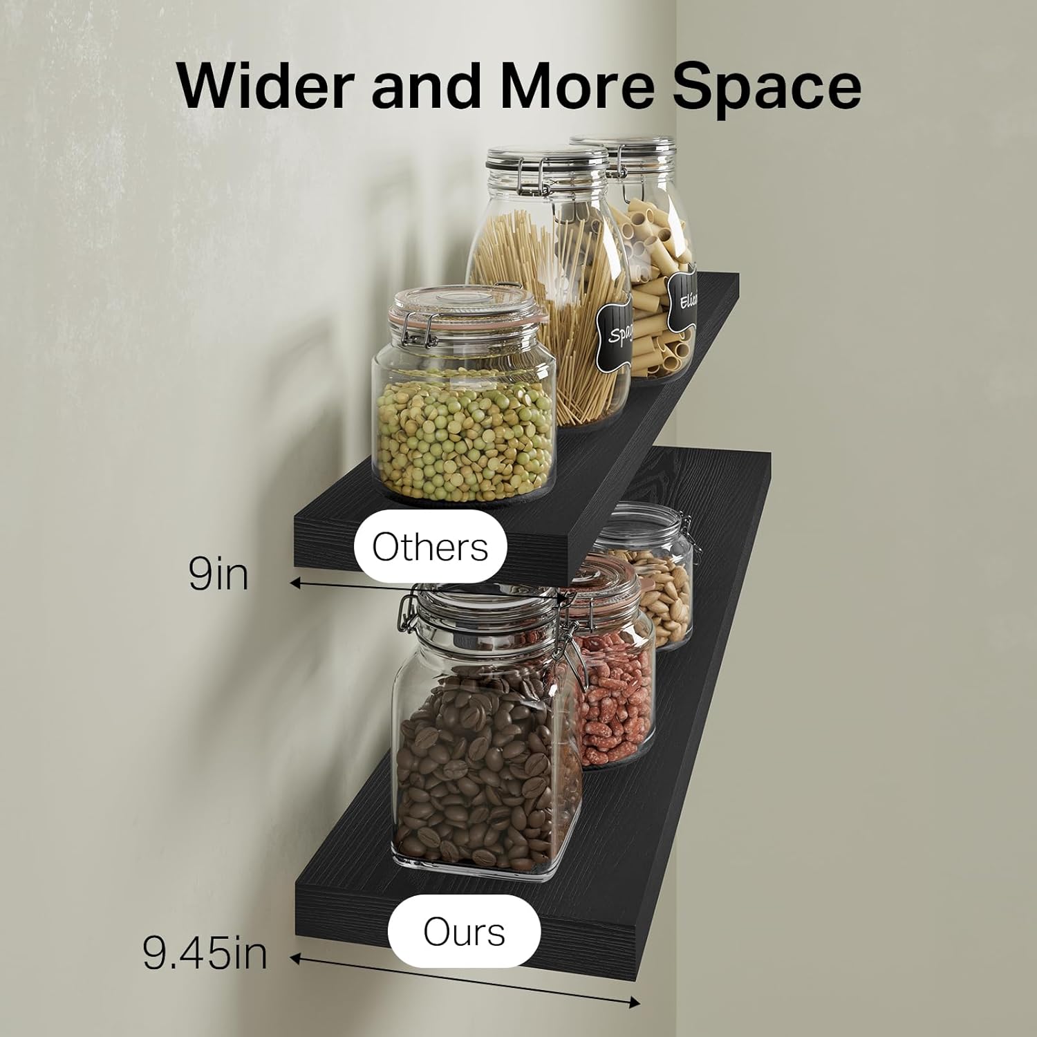 BAYKA Floating Shelves, 48 inches Long Heavy Duty Wall Mounted Rustic Wood Shelves for Bathroom, Bedroom, Living Room, Kitchen, Office, Hanging Shelf for Books/Storage/Decor(Black,Set of 2)