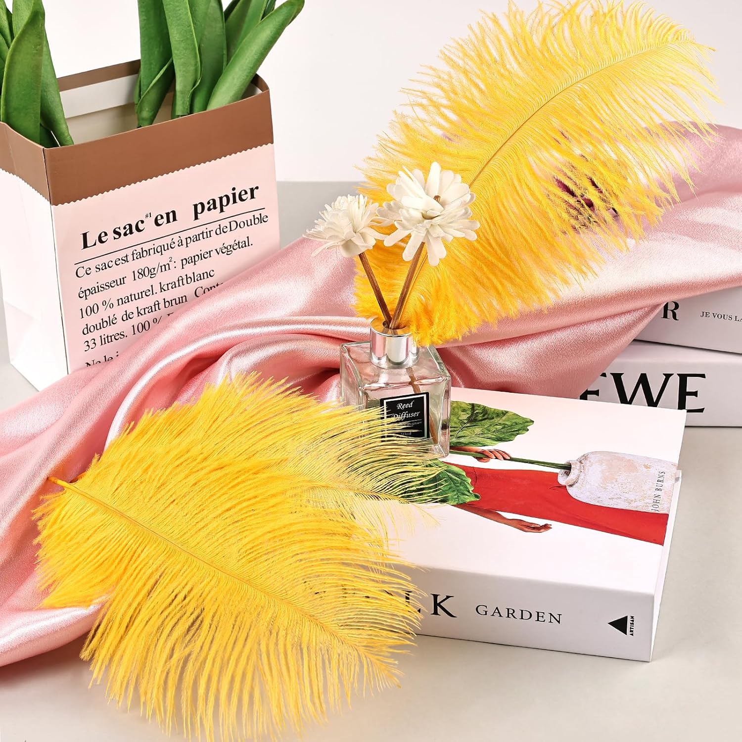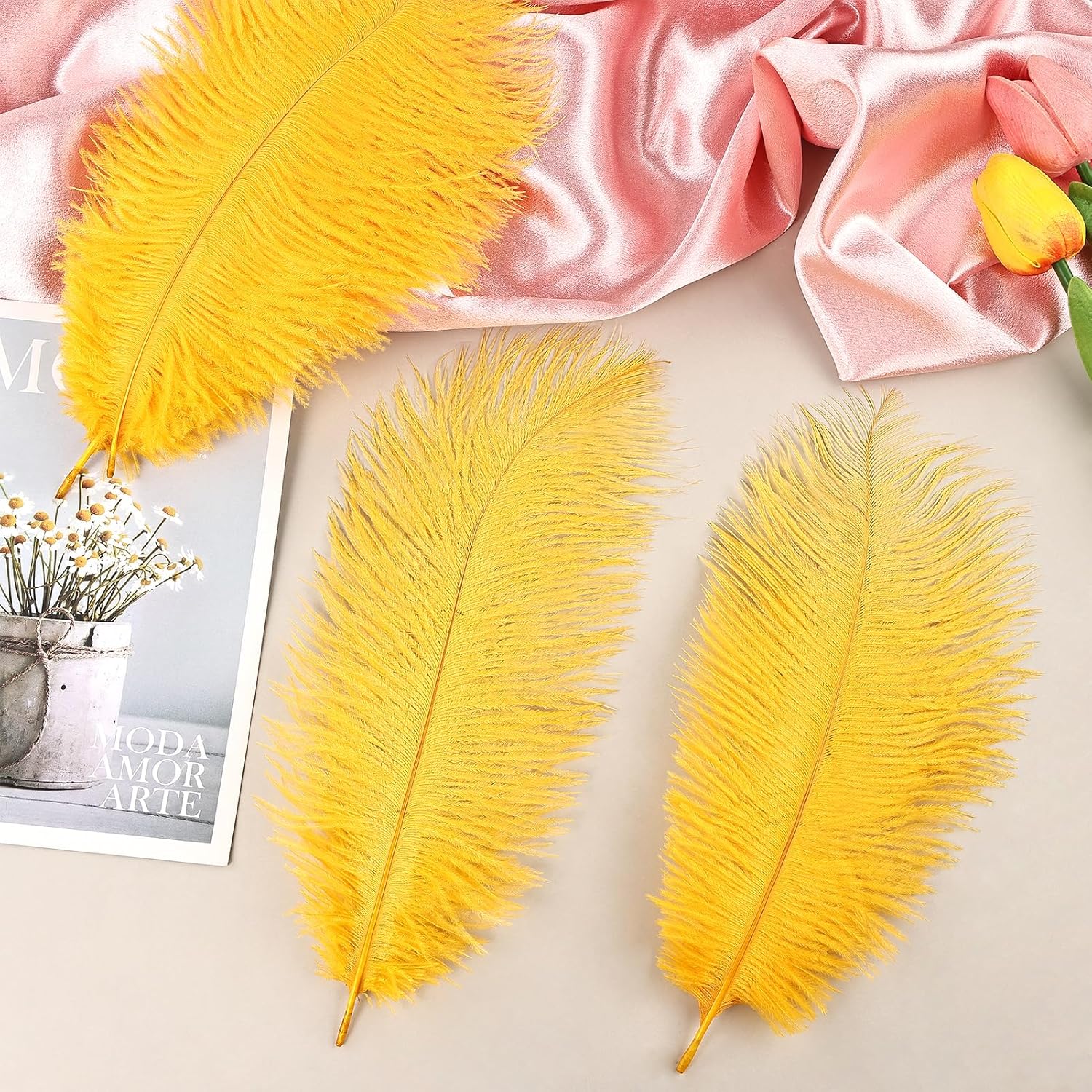 THARAHT Golden Yellow Ostrich Feathers 12pcs Natural Bulk 8-10Inch 20cm-25cm for Crafts Wedding Party Centerpieces Halloween and Home Decoration Feathers