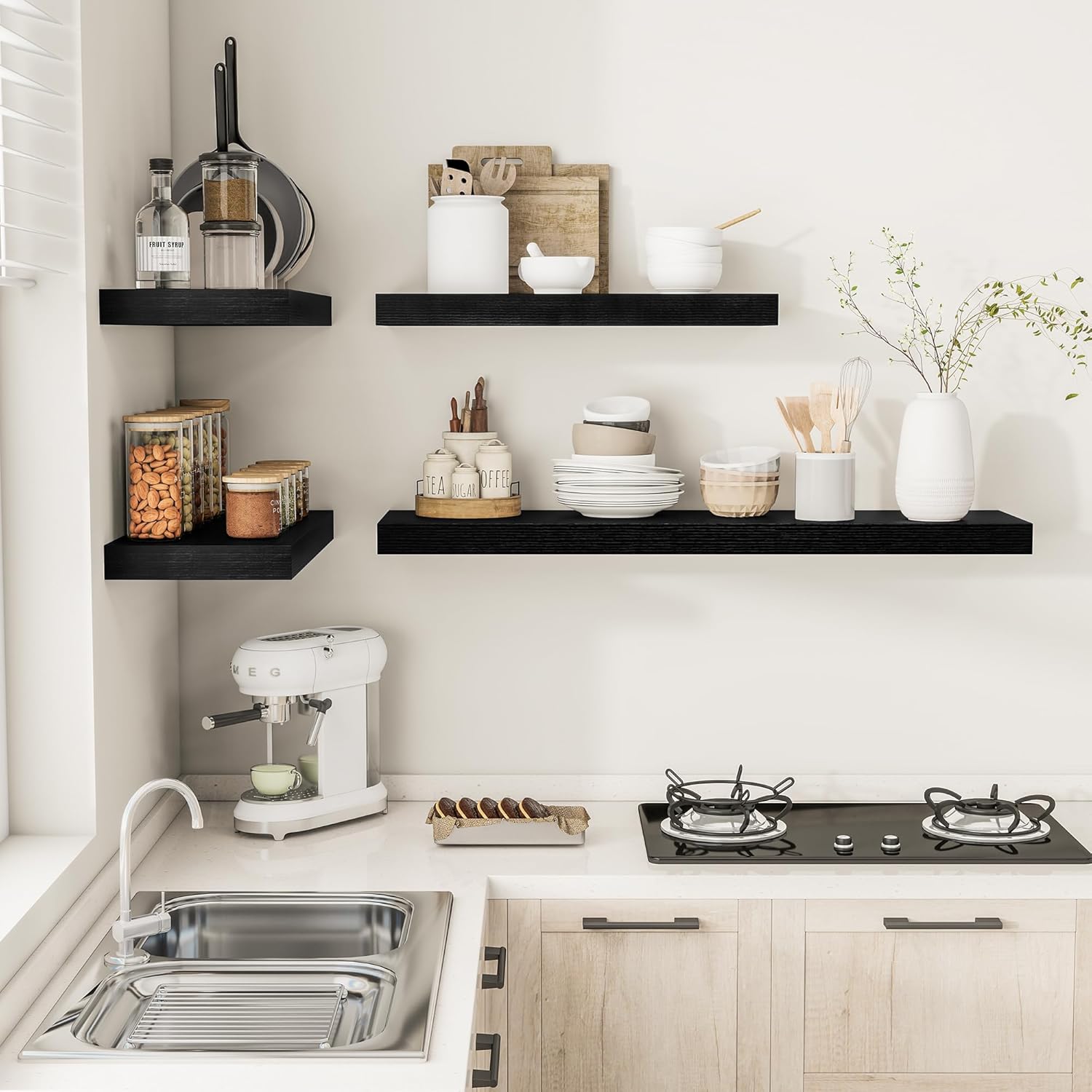 - Sturdy and Easy to install: Includes all necessary hardware to make these floating shelves extremely easy to assemble. We also provide you with detailed install instructions for you to install the shelves in a few minutes.If youโre looking for an easy way to add some functional style to your room, It highly recommend definitely recommend giving these a try!