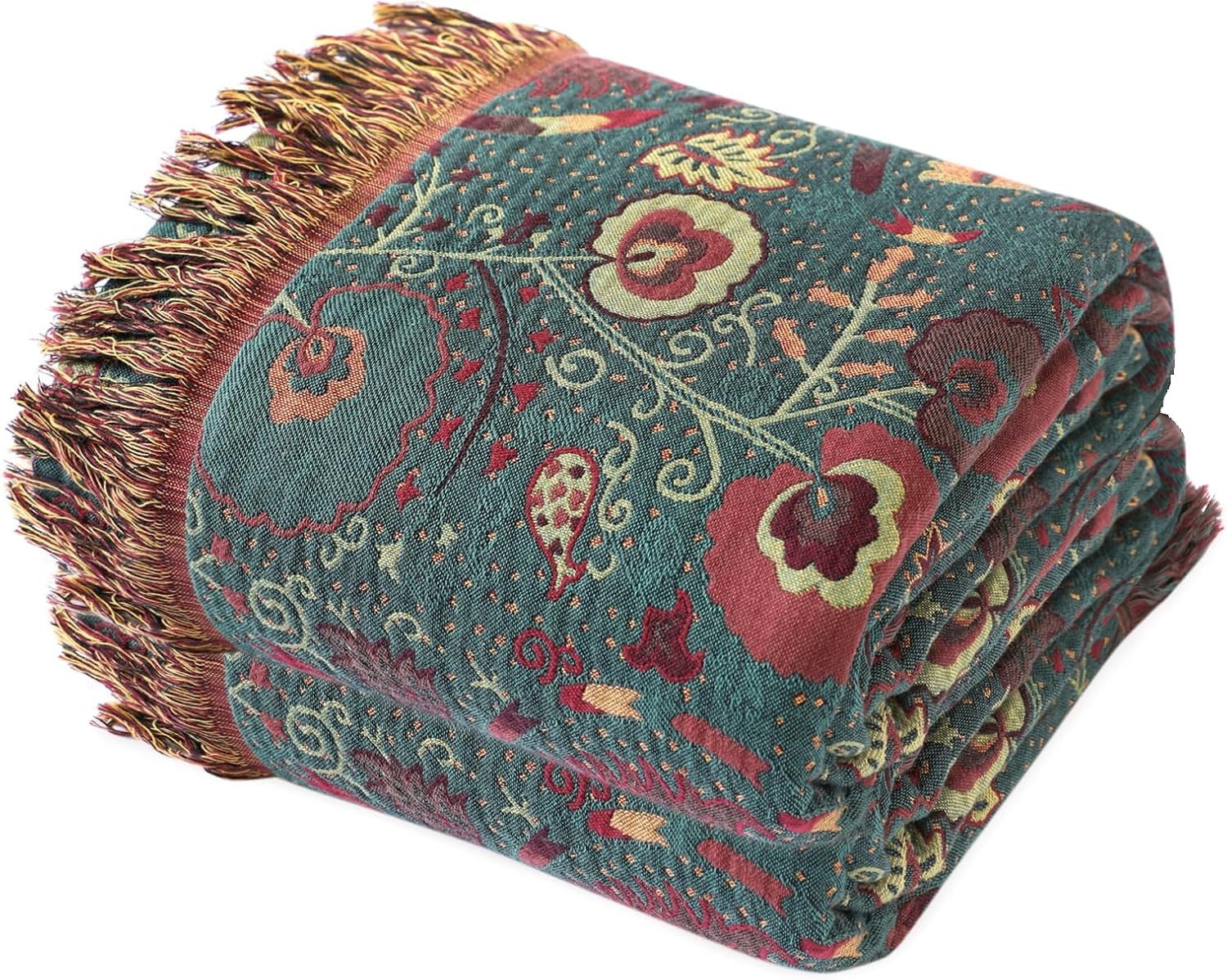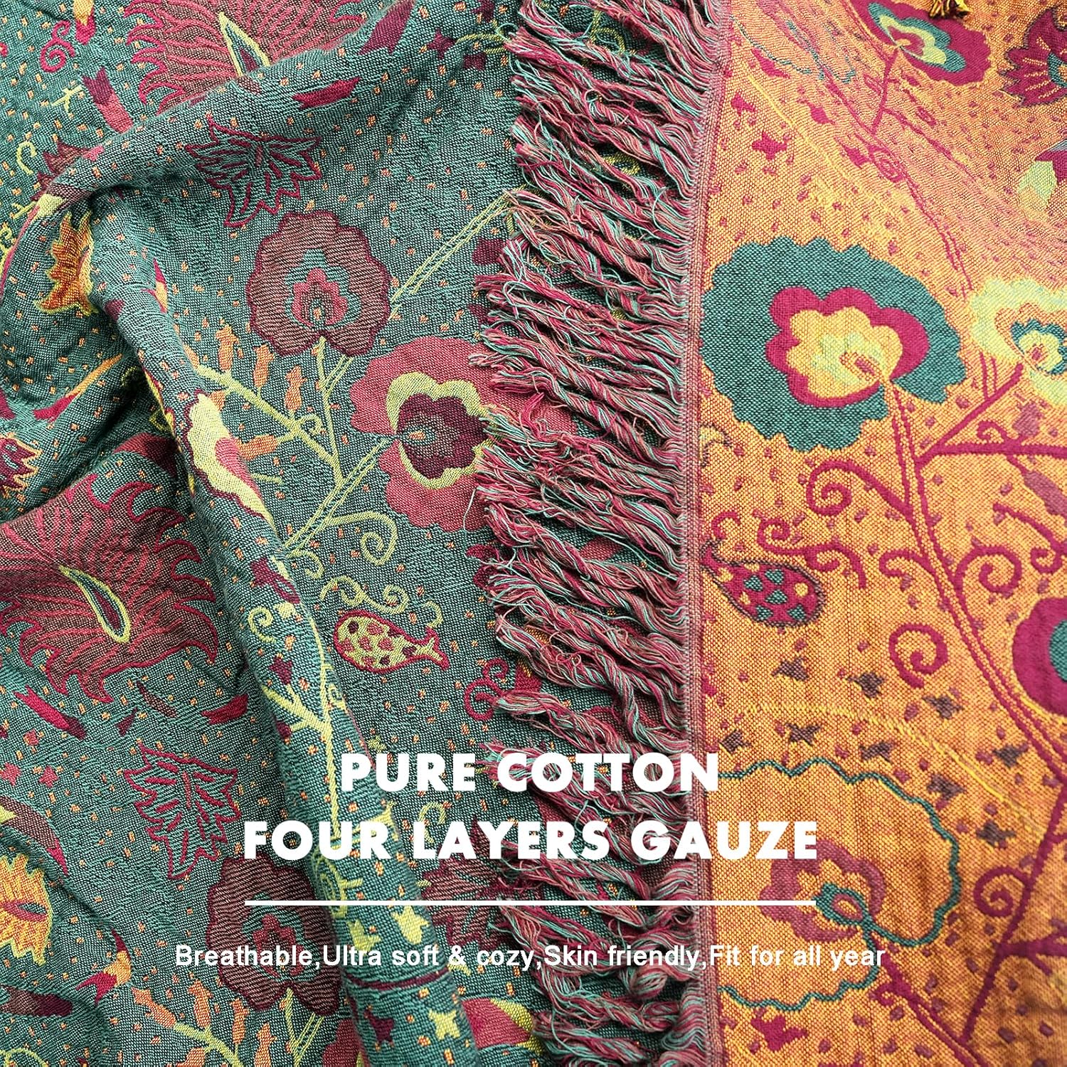 MSGKV Cotton Bed Blanket for Couch and Sofa Blankets for Living Room Bedroom Reversable Florals Throw 90"x98" Breathable Cozy Boho Blankets