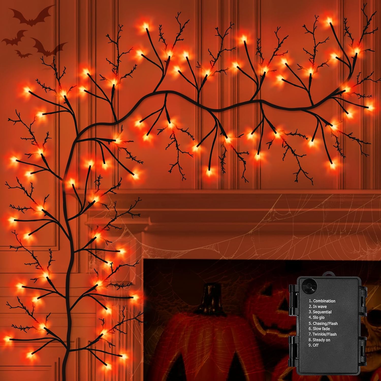 - 【Halloween Garland Decorations】You will receive 7 Feet long realistic Halloween garland with 63 orange LED lights, including 21 large branches and 63 small branches. The black Vine Twigs can present a mysterious atmosphere, Ideal for Fall Halloween indoor outdoor decorations