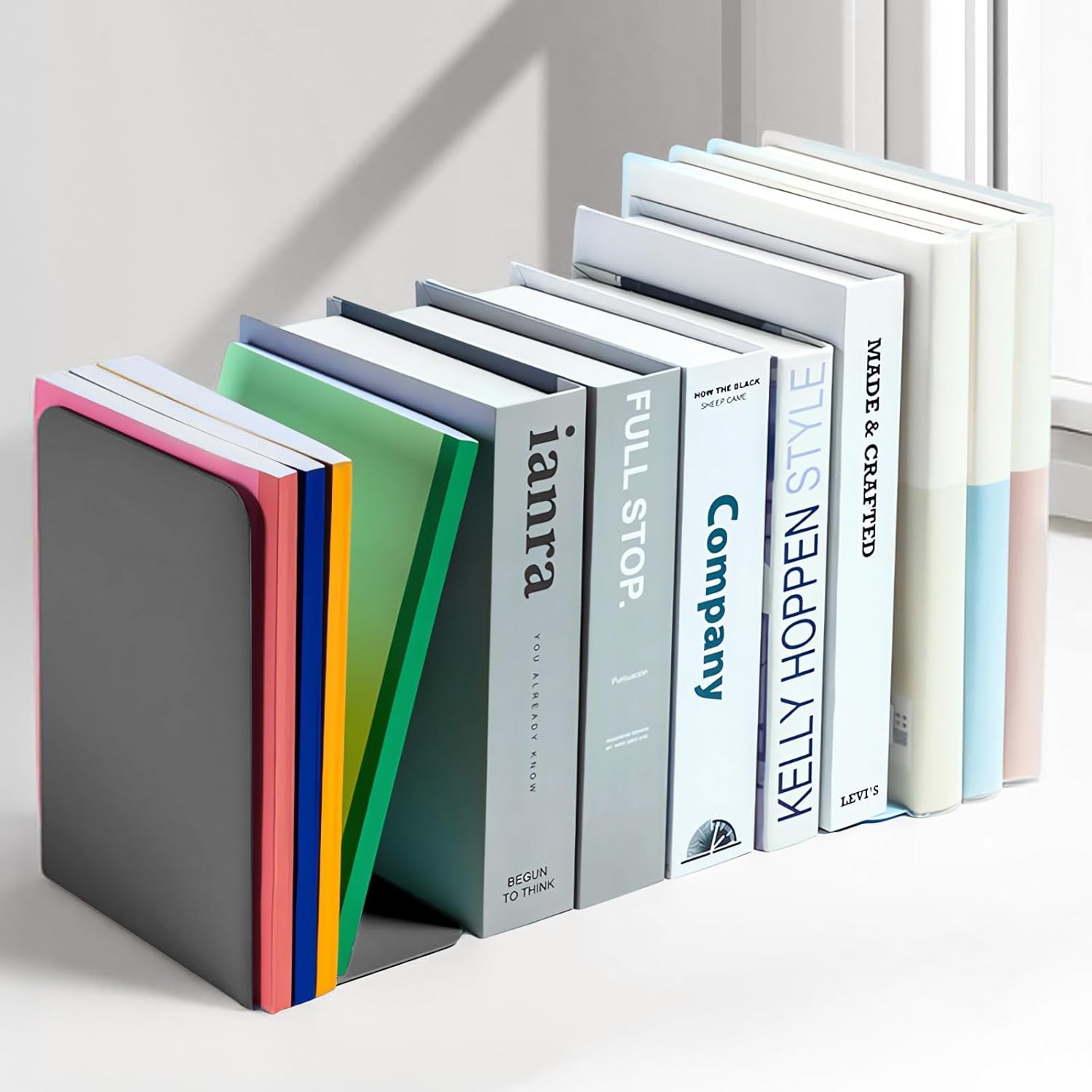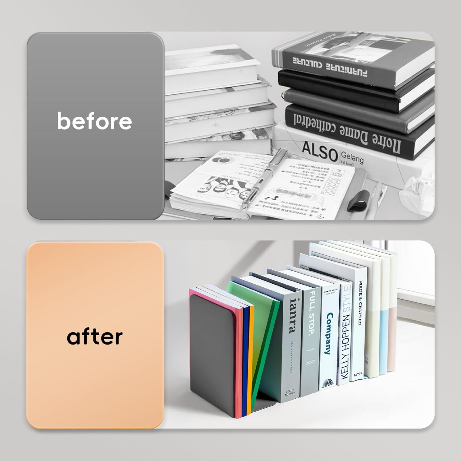 - SECURE BOOK STORAGE: The L-shaped design and non-skid rubber feet keep books firmly in place without any risk of sliding or toppling over when stacked.