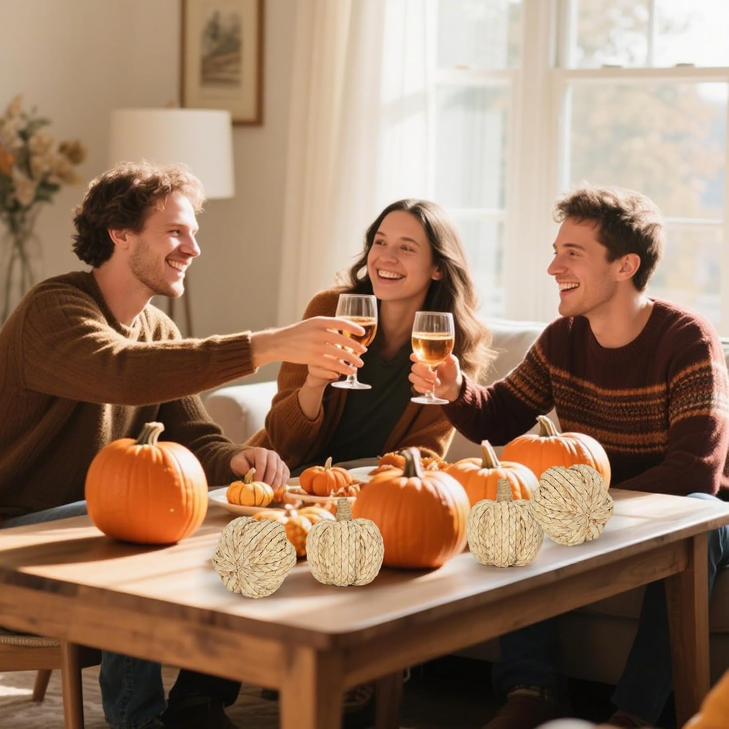 - [Unique Design]This classy thanksgiving decor includes 4 same small pumpkins(each 3.9*3.7*4.3inches). Textured woven cornhusk has simple good looking. As fall table decor, they are outstanding and you really want to have them immediately