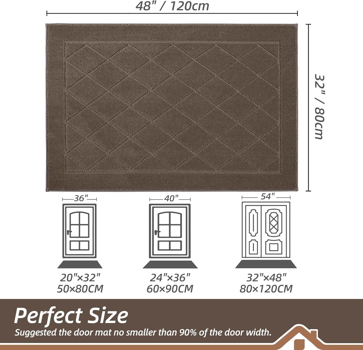 - Stylish and Low Profile Design: Fashionable geometric patterns are suitable for most kinds of home dรฉcor. Our doormats measure 32" x 48" x 0.45", low-profile design and reinforced overlock edges to ensure that doors won't get stuck or the door rug go curling. Note: Please confirm the height of the door gap before purchasing