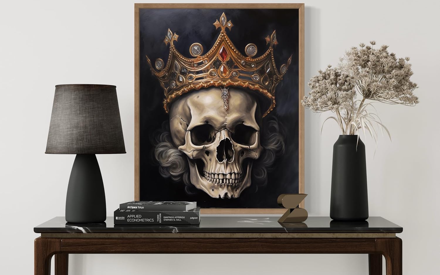 Skull Queen Poster Art Print, Halloween Scary Vintage Wall Art Academia Spooky Painting Decoration for Horror Prints, Gothic Posters Bedroom Decor 89 (Skull Queen, 8 x 10 inches, Wood Frame)