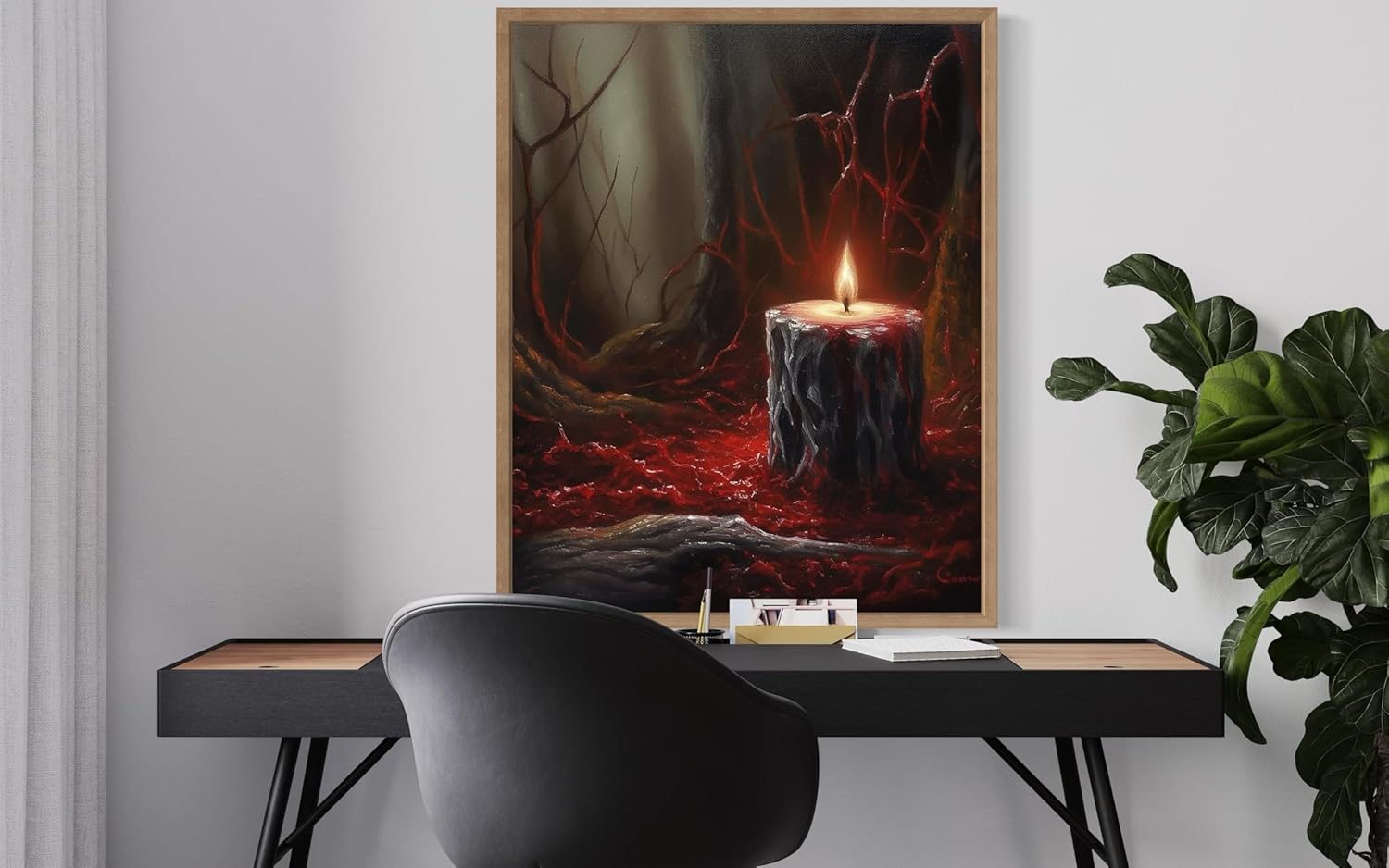 Gothic Candle Poster Art Print, Halloween Scary Vintage Wall Art Academia Spooky Painting Decoration for Horror Prints, Posters Bedroom Decor 89 (Gothic Candle, 11 x 14 inches, Wood Frame)