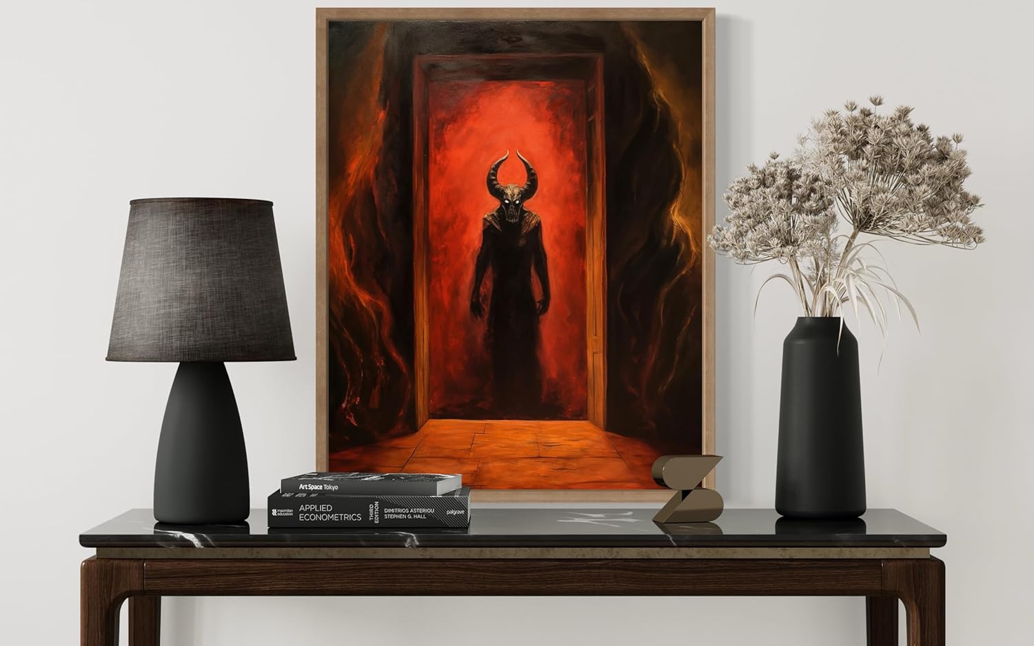 Satan and Hell Poster Art Print, Halloween Scary Vintage Wall Art Academia Spooky Painting Decoration for Horror Prints, Gothic Posters Bedroom Decor 89 (Satan and Hell, 11 x 14 inches, Wood Frame)