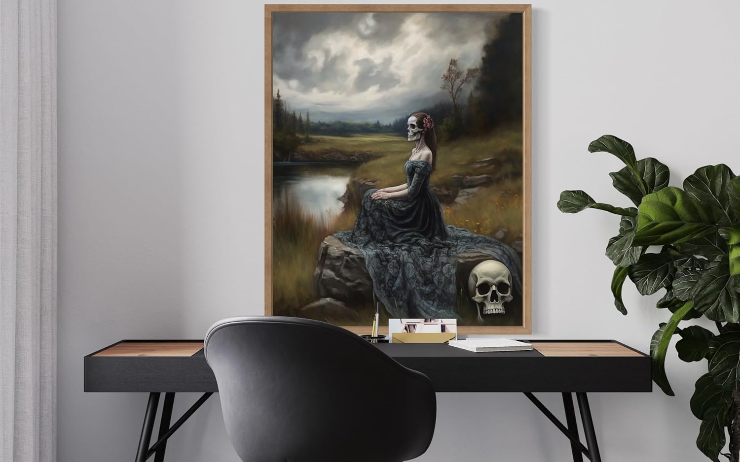 Widow Ghost Poster Art Print, Halloween Scary Vintage Wall Art Academia Spooky Painting Decoration for Horror Prints, Gothic Posters Bedroom Decor 89 (Widow Ghost, 11 x 14 inches, Wood Frame)